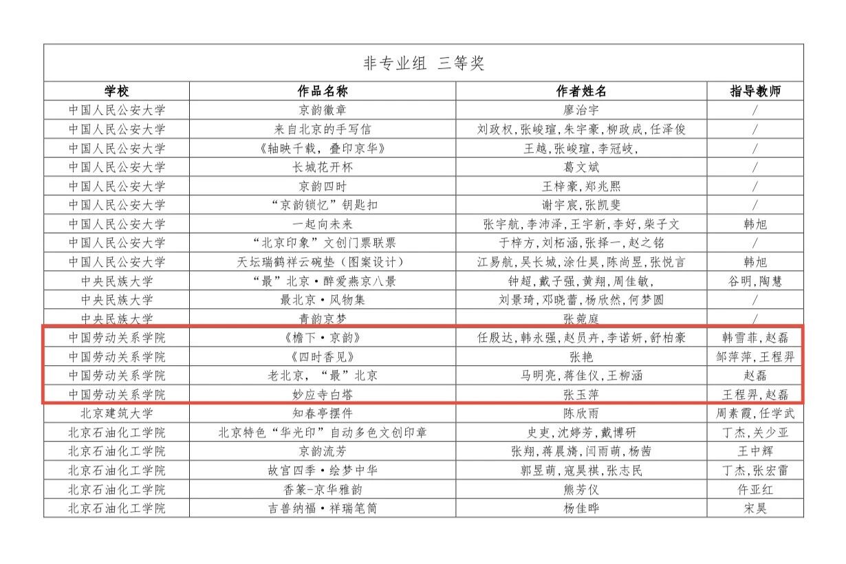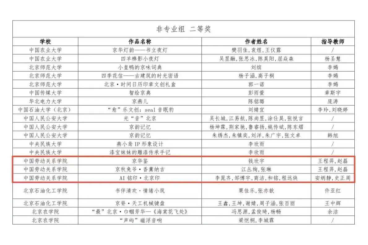 此次参赛不仅激发了我校青年学子对文化创意设计的兴趣,更提升了他们的创新思维、实践能力和文化自信。学子们将知识、艺术与技术相融合,把北京的历史文化、科技活力与时代精神融入作品之中,充分展现了我校大学生的文化创意实践水平,为首都文化产业创新发展和创意成果转化注入了青春力量。