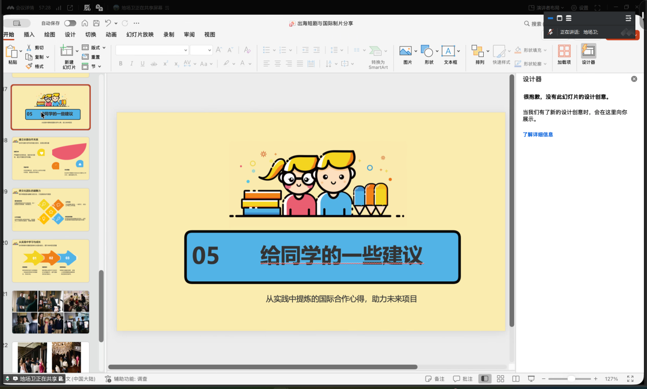 12月17日18点30分,文化传播学院戏剧与影视学系举办了“海外短剧与国际化制片协作经验分享”的线上专题讲座,由2010级校友、资深影视人、海外制片人陈健康老师主讲,戏剧与影视学系副系主任孙建业老师主持。