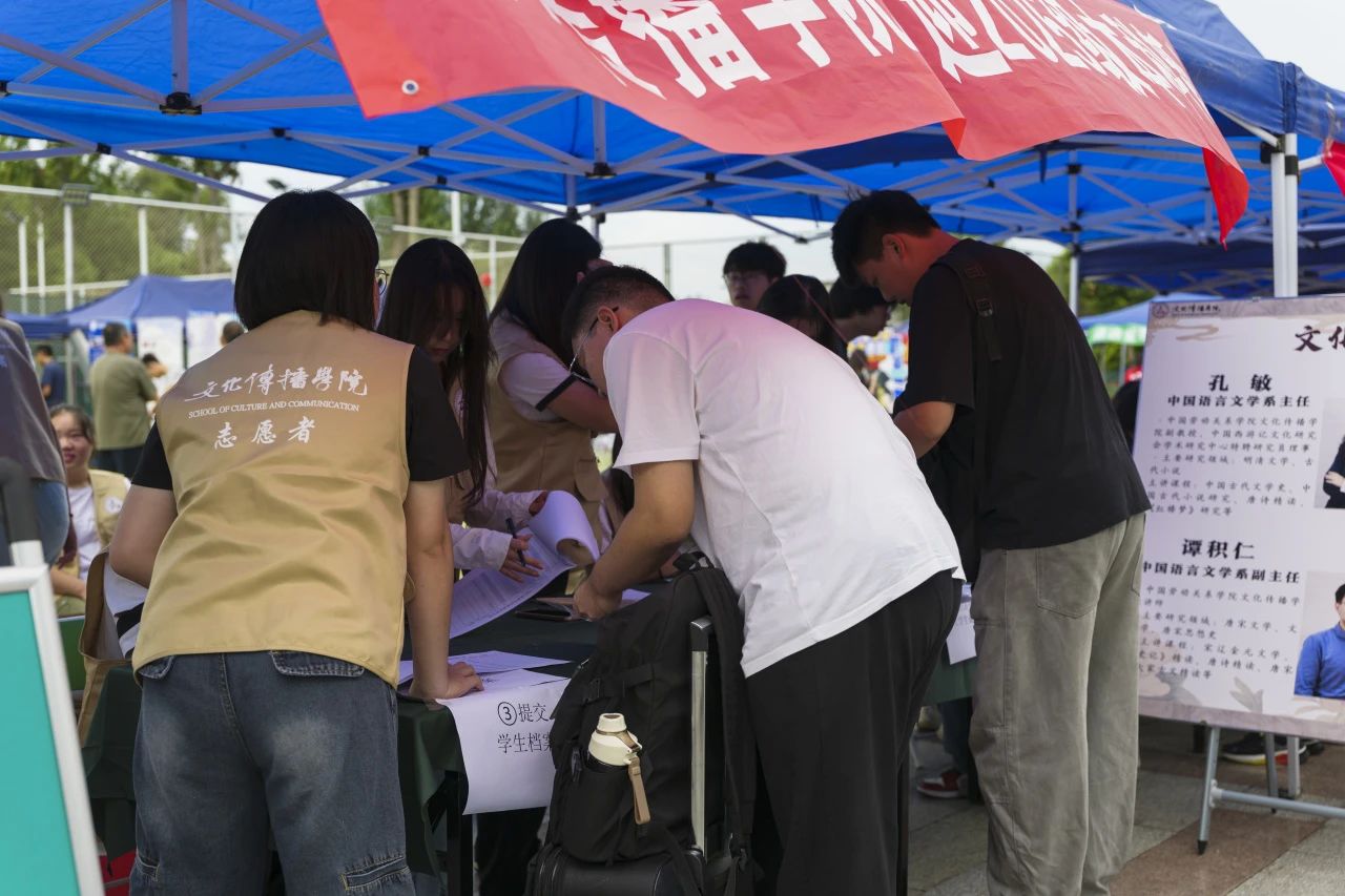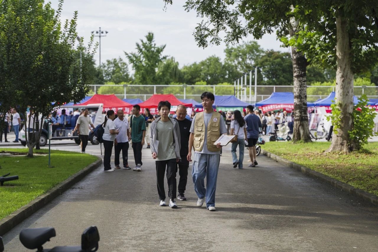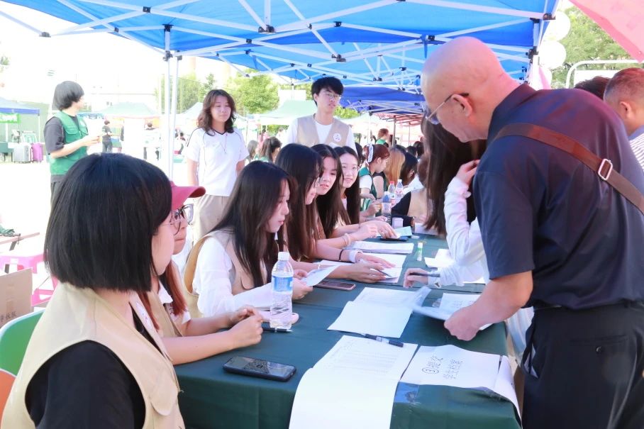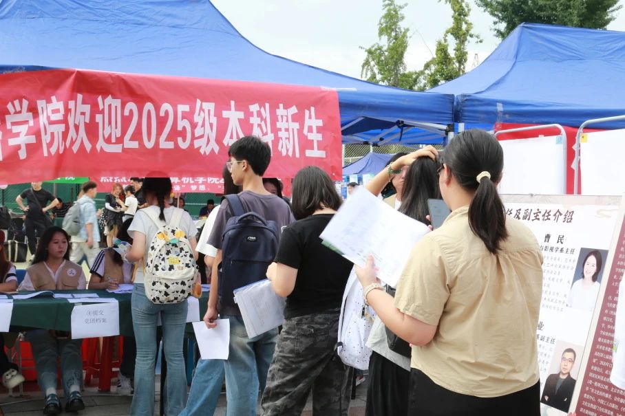 报到处的帐篷下,新生们在家长的陪伴下,按流程有序完成入学报道手续。纸张轻响,表格传递,新生与志愿者忙碌而默契的配合,处处洋溢着学院热烈的氛围与蓬勃的朝气。