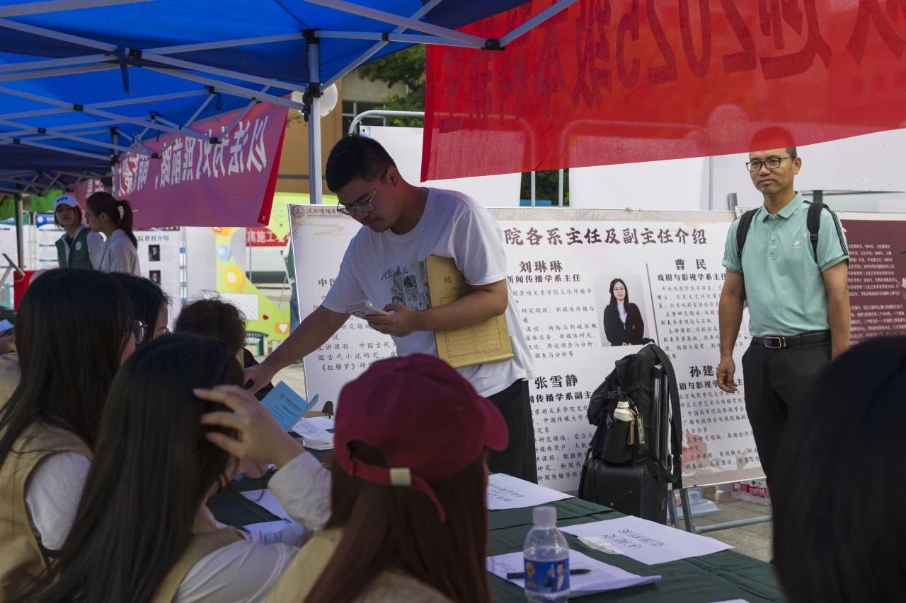 高举的指引牌、整齐的展板、有序摆放的物料,无不体现着志愿者们的细致与辛劳。晴日炎炎,报到引导、物资发放、材料审核……他们奔波不停,全力为新生提供最周到的入学服务。新生们脸上洋溢的笑容,正是对志愿者们辛勤付出的最好回应。
