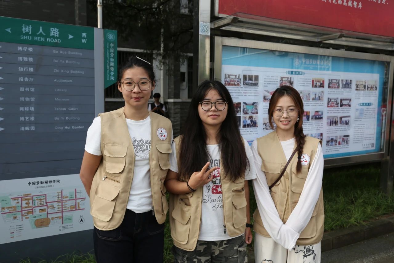早晨7:00,学院的志愿者们已早早集结于正门接待处与报到处。他们身着印有学院标识的咖色马甲,以充分的准备和饱满的热情,迎接每一位新生的到来。