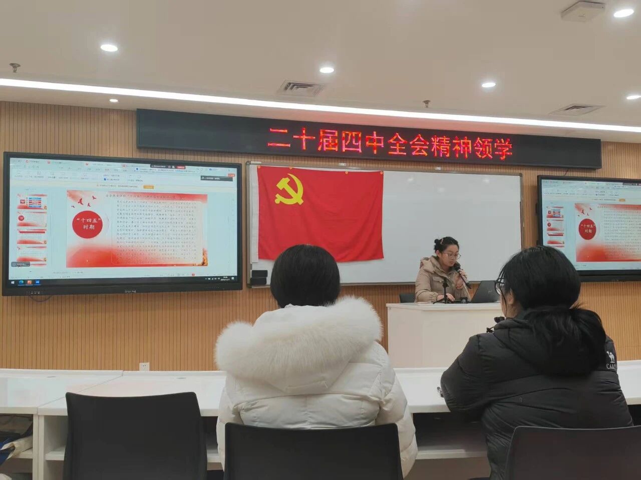 会上,领学人刘欣冉以 “学习二十届四中全会公报全文”为主题,从两大维度切入:一是梳理全会对二十届三中全会以来中央政治局工作的充分肯定 ——着重阐释在党中央领导下,我国 “十四五” 规划即将胜利完成、经济实力跃上新台阶的重大成就;二是聚焦 “十五五” 规划战略意义,强调这一时期作为 “基本实现社会主义现代化夯实基础的关键阶段”,需要全党全国凝聚奋斗力量。