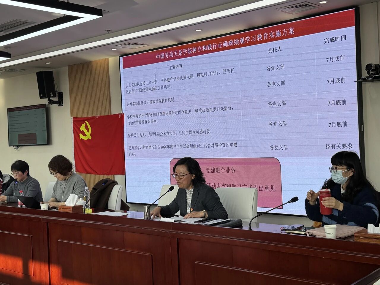 会议传达了《中国劳动关系学院树立和践行正确政绩观学习教育实施方案》,系统部署学院学习教育工作。李淑玲书记强调要以正确政绩观引领学院高质量发展,重点做好三项工作:一是推进党建与业务深度融合,将学习教育成果转化为就业帮扶、考研指导、学科发展等具体工作中;二是压紧压实责任链条,班子成员严格落实“一岗双责”,各支部制定契合支部品牌建设的个性化实施方案;三是坚持开门搞教育,建立师生意见建议闭环反馈机制,多为师生办实事、办好事。