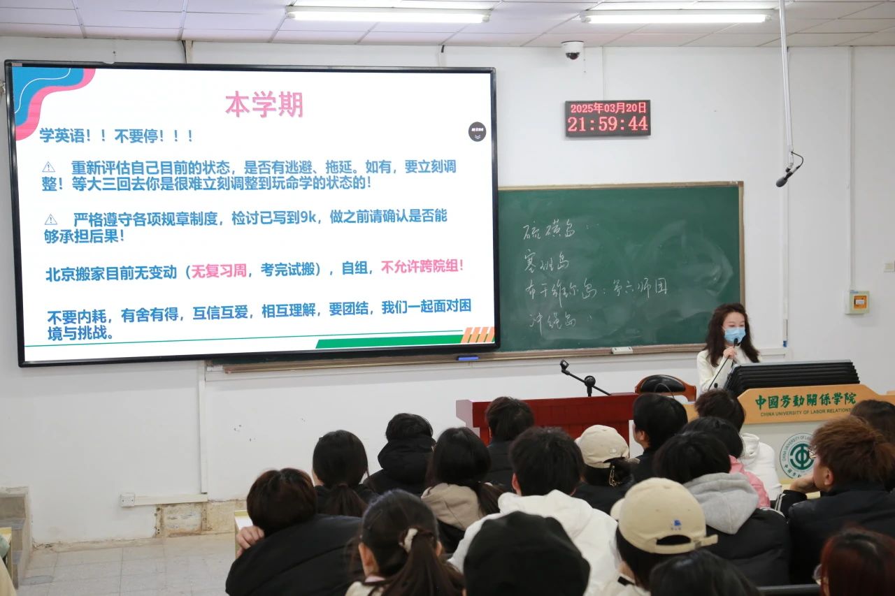 2025年3月20日21:20,文化传播学院2023级年级会在阶五准时召开。2023级全体同学参会。年级会围绕就业情况、学风建设、安全教育、心理调适四个主题开展。
