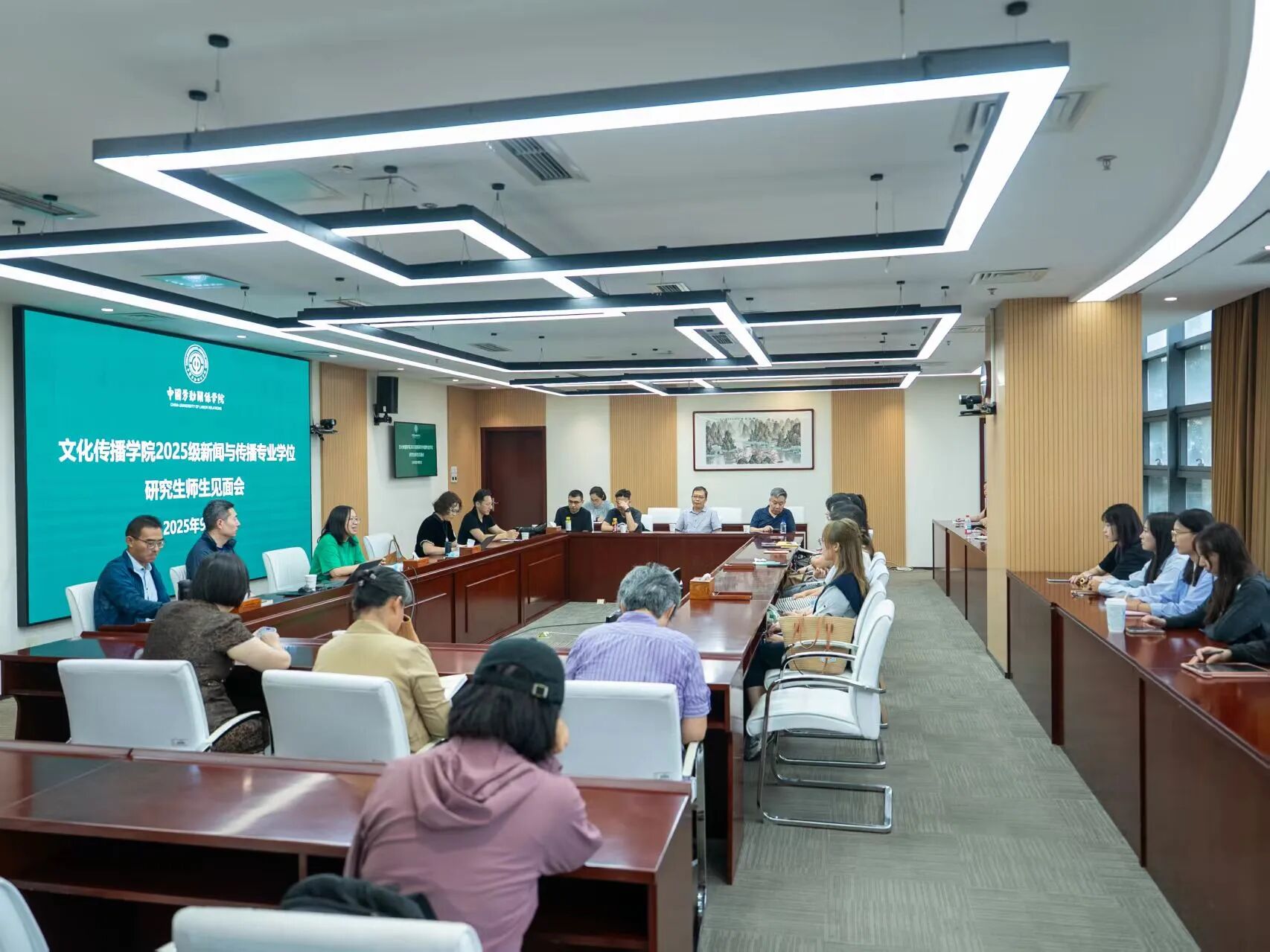 2025年9月5日13点,文化传播学院2025级新闻与传播专业研究生师生见面会在致远楼509教室召开。学院院长、分管研究生工作的副院长、十余名研究生导师、25级研究生班主任、研究生秘书及全体25级新生参加。