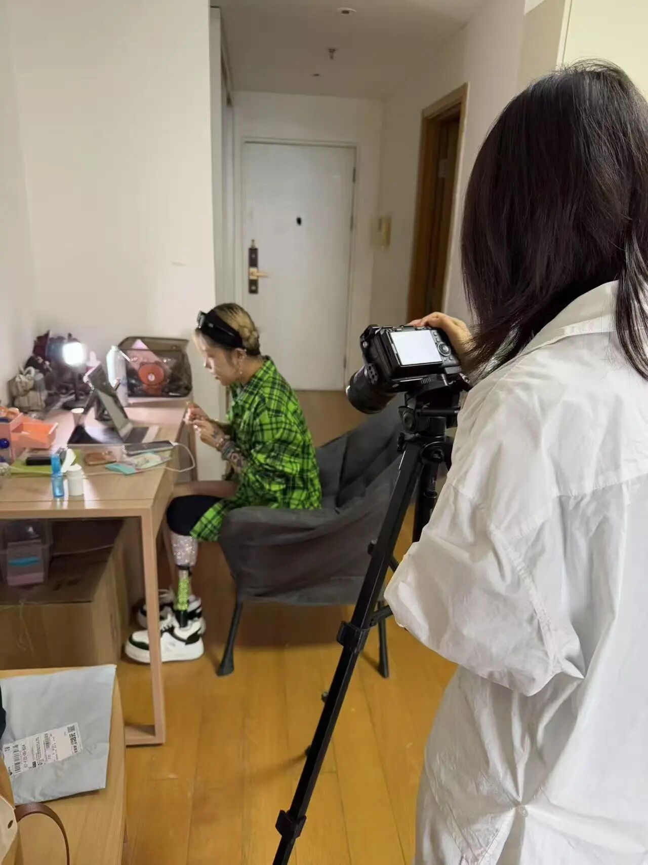 《花腿》真实记录了一位先天性患有腿部疾病的女孩“花腿”在酒吧驻唱的故事。“花腿”因年少患病而截肢,但她不惧世人眼光、勇敢地站上自己喜欢的舞台,用积极、乐观的一面向人们展示了即使命运不公,她也活成了自己的光。该作品由谢寒和戴潇雅两位老师指导。