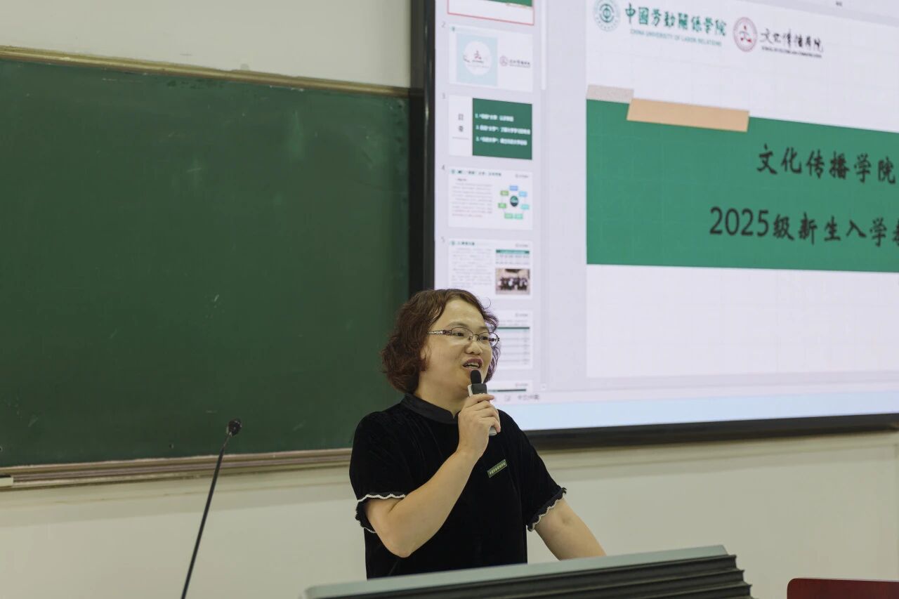 为了帮助2025级新同学尽快适应大学生活,8月31日下午14:00,中国劳动关系学院文化传播学院院长王翠艳老师在涿州校区阶梯教室一为我院大一学生带来新生入学讲座。此次会议由2025级辅导员杨洋老师主持,全体2025级新生参加。