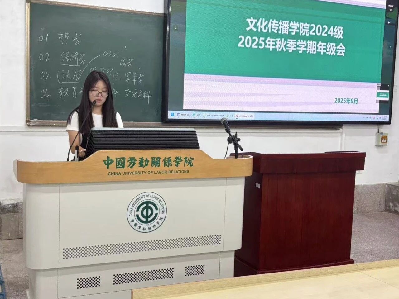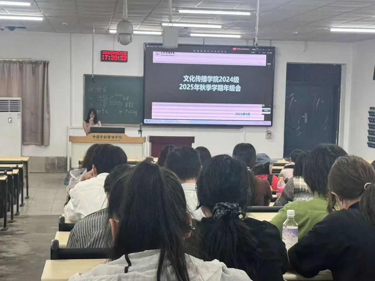 2025年9月8日12:10,文化传播学院2023级年级会在致远楼105准时召开。2023级全体同学参会。年级会围绕加强学风-审核评估,安全教育,心理调适,管理规章四个主题开展。