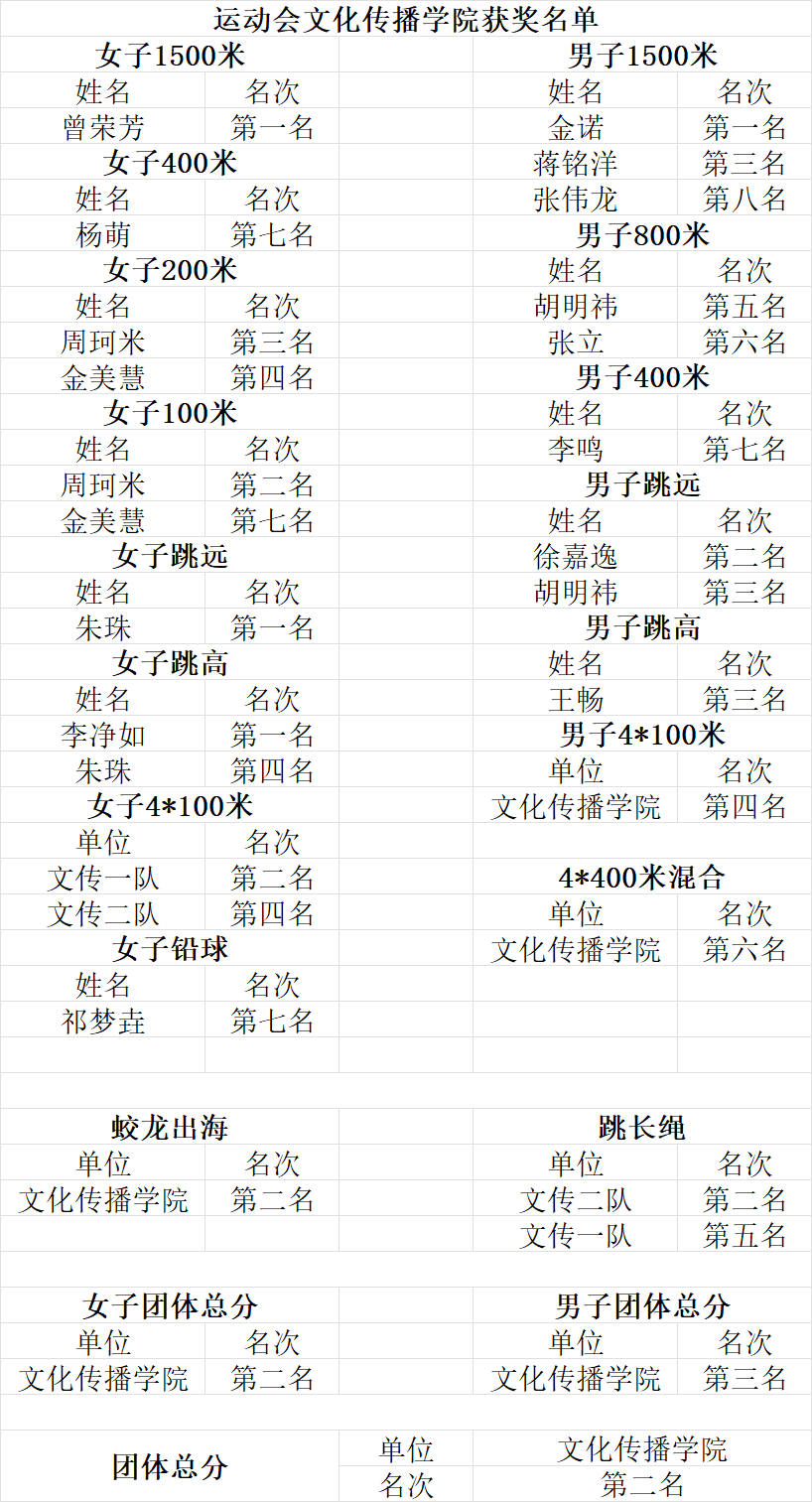 最终成绩揭晓,所有的等待与付出都拥有了意义。文化传播学院夺得女子团体赛第二名和男子团体赛第三名,以及团体总分数的二名的好成绩,全体文传人的携手拼搏,获得了共同的喜悦与荣光。