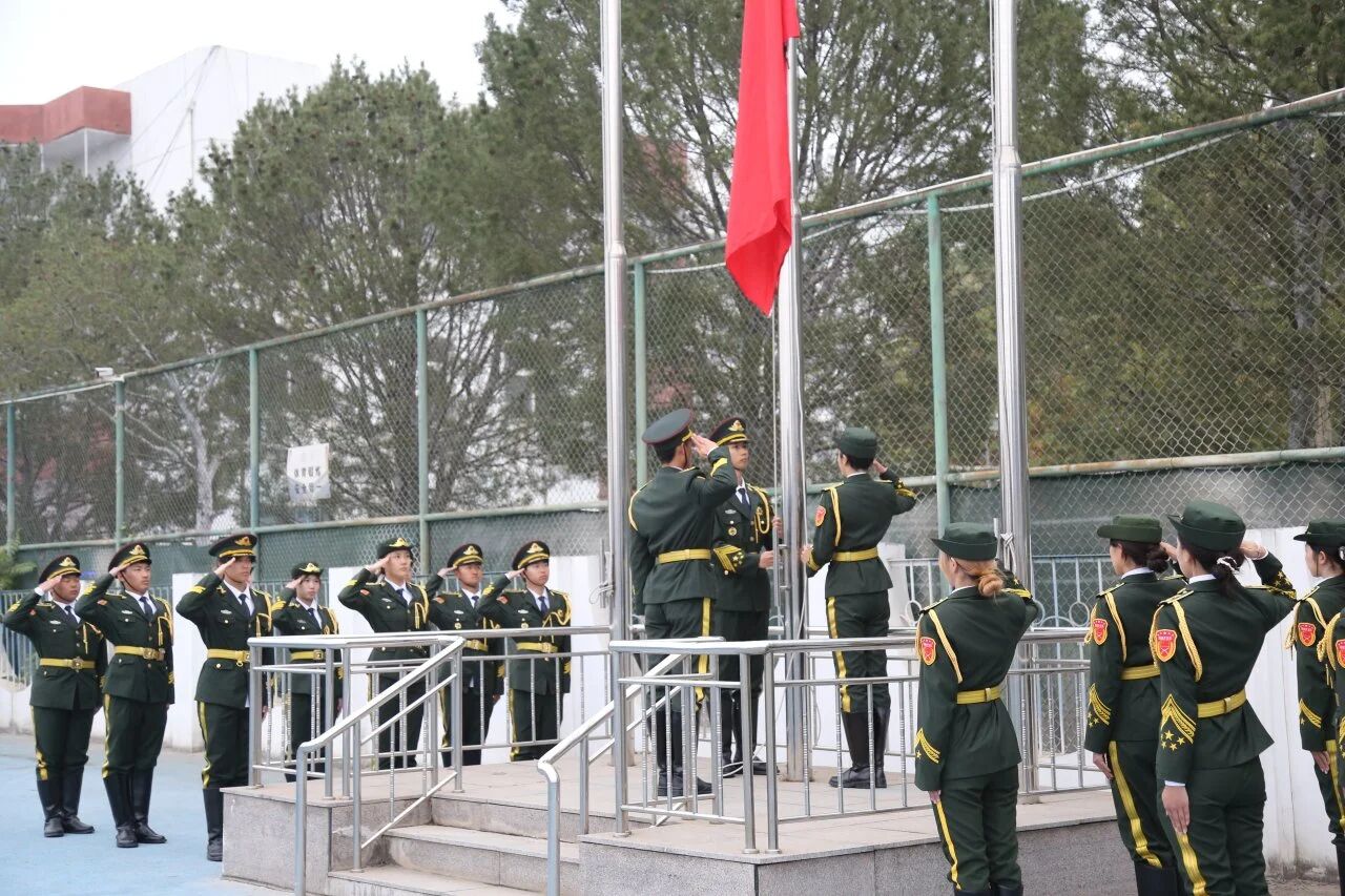 8时22分,义勇军进行曲响彻校园,看台上的同学们起立与方阵代表队的同学们一起,神色肃穆,歌唱国歌,向国旗行注目礼。