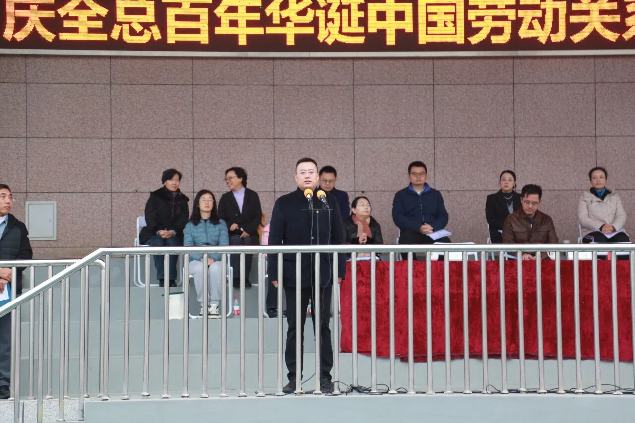 升旗仪式结束后,傅德印校长致辞。他以中华全总工会成立一百周年为引展开讲话,强调了劳动精神与拼搏精神于青年学子的重要性,亲切慰问了中劳学子与运动会成员,对学子们的体育发展予以深切期盼。