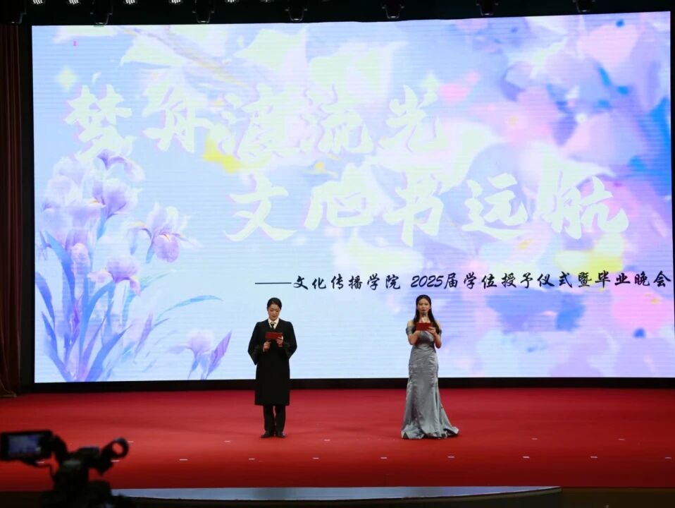 文化传播学院2025届毕业典礼暨学位授予仪式及晚会圆满落幕。满载着师长的嘱托、同窗的情谊和母校的祝福,223名文传学子将从这里出发,以“有文化的传播者,能传播的文化人”为信念,乘风破浪,驶向更加广阔的人生海洋。