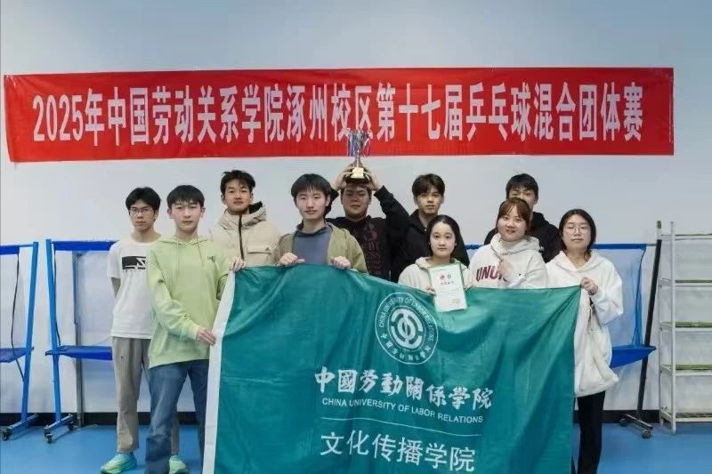 李想、黄淑雯、赵志锋、李鸣、龙亚丽、张紫烨、彭忱扬、李哲光获中国劳动关系学院第十七届乒乓球混合团体赛季军。