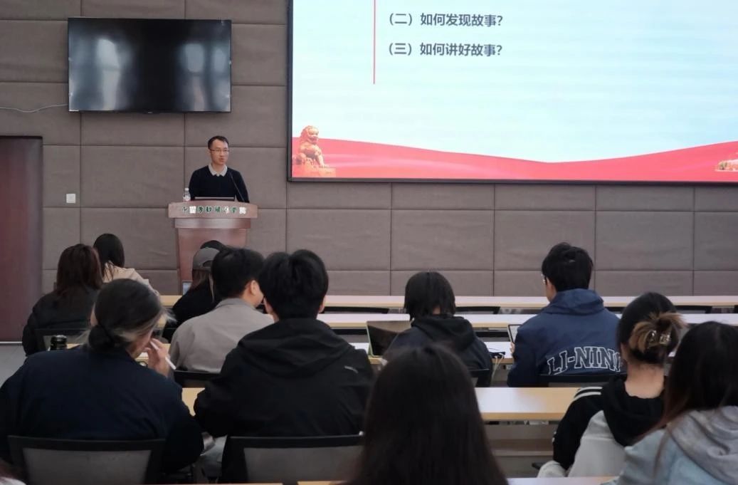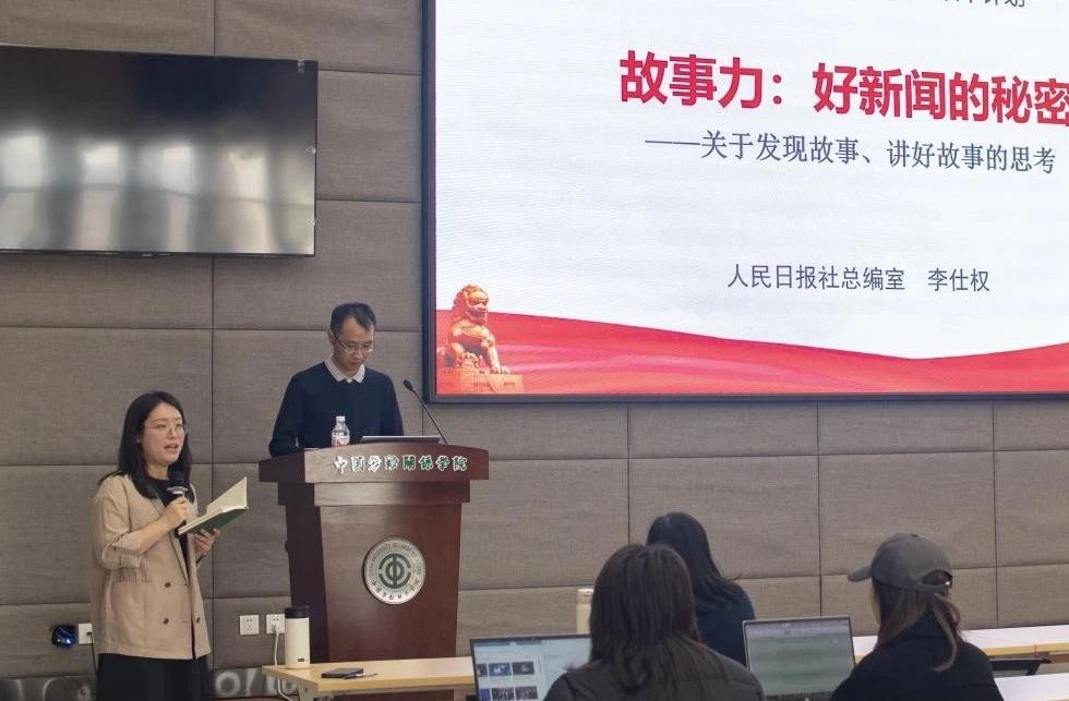 2025年3月26日下午,由中国劳动关系学院教务处、文化传播学院新闻传播学系主办的新闻传播理论前沿与实践创新论坛在北京校区致远楼909室举行。人民日报社总编室副主任、高级编辑李仕权应邀作题为“故事力:好新闻的秘密——关于发现故事、讲好故事的思考”的讲座。讲座由文化传播学院新闻传播学系主任刘琳琳老师主持、文化传播学院副院长吴麟副教授作总结发言,文化传播学院2022级新闻学专业学生参加。