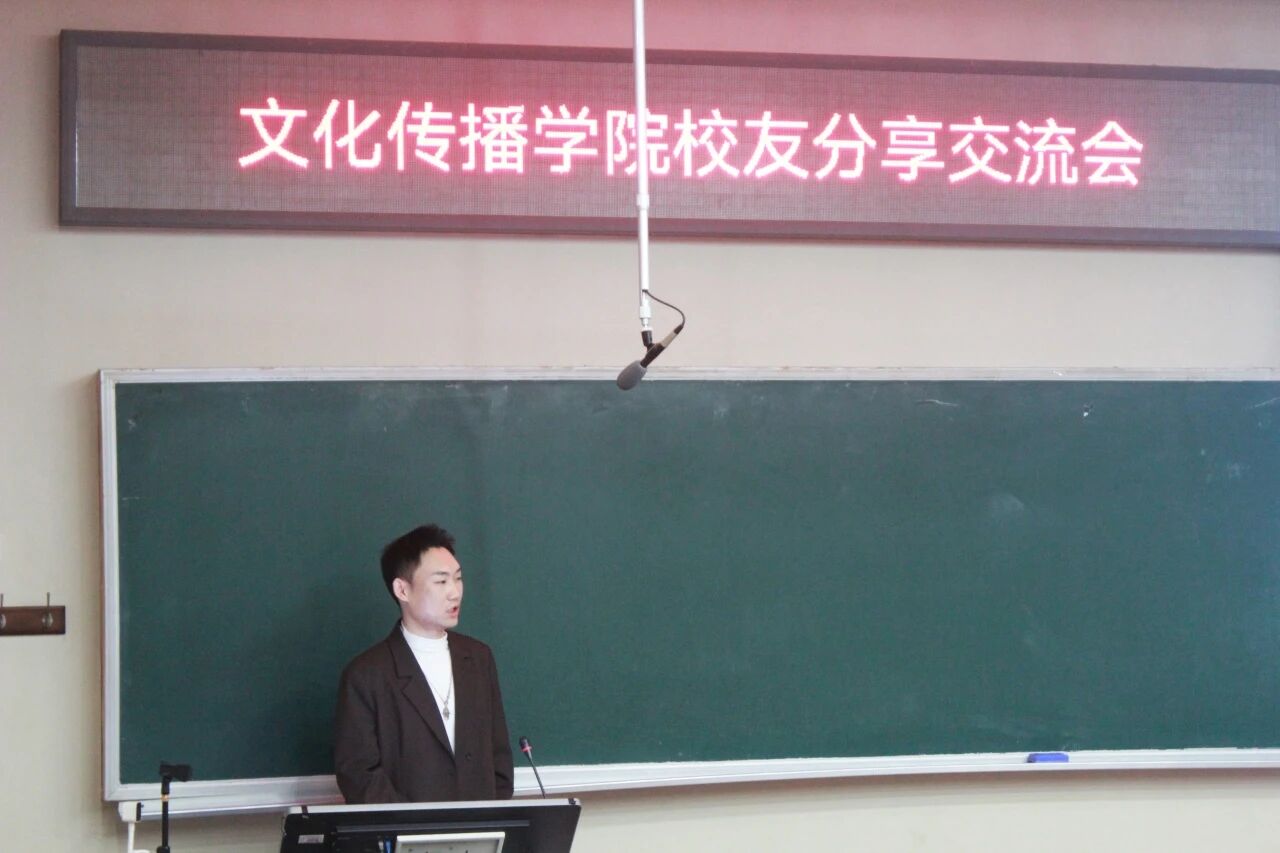 2025年11月17日晚18:30,文化传播学院在闻道楼阶梯教室成功举办了校友职业经验分享会。本次活动特邀我院2020级校友、郑州冰煜文化传播有限公司创始人苏铭煜返校交流,分享其在短剧与漫剧领域的职业经历与行业见解。分享会由学院王晨老师主持,吸引了众多在校研究生与本科生积极参与。