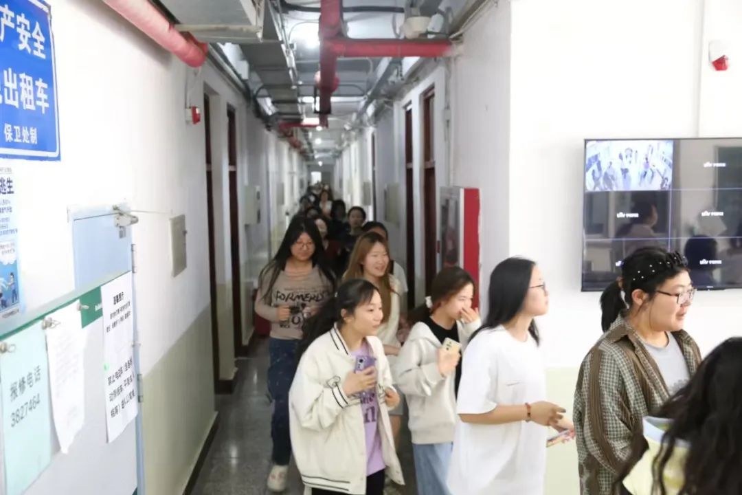 讲座完成后,二公寓同学返回宿舍,按照规划路线进行了疏散演练。在工作人员的哨声响起后,各班生活委员和安全委员组织同学们从宿舍东侧门有序撤离,全程无推挤、无慌乱地沿指定逃生路线向空场地紧急疏散,用时4分10秒。