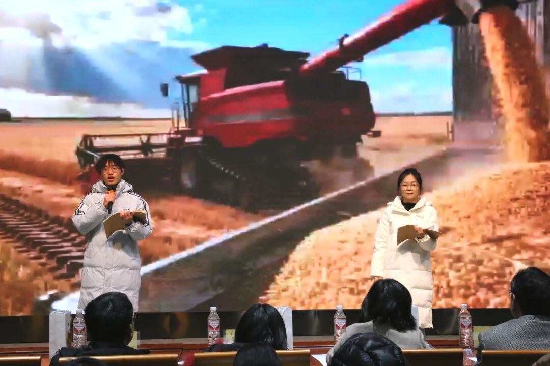 以秋为尺,丈量滚烫理想。朱玉印同学以诗为笔,用朗读勾勒金秋丰收盛景,藏着耕耘与希望,诉说青年与时代的滚烫理想。