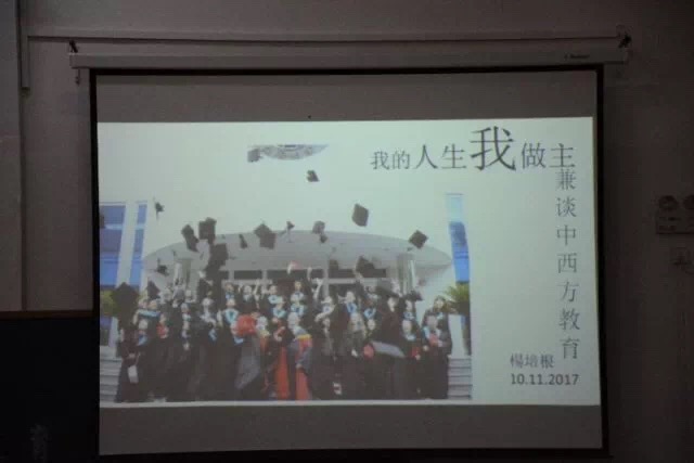 2017年11月10日14:30文化传播学院于阶九教室举办了“我的人生我做主--兼谈中西方教育”主题讲座。本次讲座的主讲人为新加坡为为教育集团校长、 新加坡-中国协会秘书长杨培根先生,杨先生先后在新加坡南洋大学(现南洋理工大学)中文系、新加坡大学(现新加坡国立大学)社会服务专业、人力资源专业获得学士、硕士、博士学位。