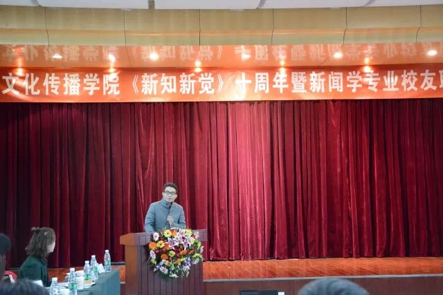 接下来由新知新觉06、07级主编上台讲话。06级主编作为新知新觉的创建人之一,简要介绍了新知新觉创办的过程,表达了对新知新觉发展到如今十周年的惊讶和喜悦。07级主编在肯定了新知新觉发展的同时也指出了新知新觉和北京其他高校校媒还存在一定差距,我们仍需进步,并重申了张玉洪老师指出的问题,希望学长学姐也能继续参与到新知新觉的工作中来。