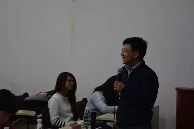 时间如白驹过隙,转眼间就到了最后一个问题,这个问题很现实,就是:请问各位学长学姐怎样能够不挂科。这个问题由一位女同学提出,好像这是大家都很关注而又不知怎样回答的。这时,贾吉峰老师站了起来,从各个方面给我们回答了这个问题,同时也告诉我们考试只是一种手段,不必为此过度担忧。
