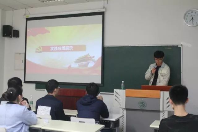首先由2014级戏剧影视文学1班的徐传珅同学代表小组进行实践活动的展示,他向我们介绍道,此次实践活动紧紧围绕党的十九大展开,参观地点选择了“砥砺奋进的五年”大型成就展。并从青年·中国梦、脱贫致富、生态、文化体育、影视、创业等方面向我们介绍了他们这次实践活动的历程和学习感悟,表示作为新时代的大学生,要积极树立与这个时代主题同心同向的理想信念,勇于担当这个时代赋予的历史责任,要珍惜韶华,潜心读书,敏于求知。