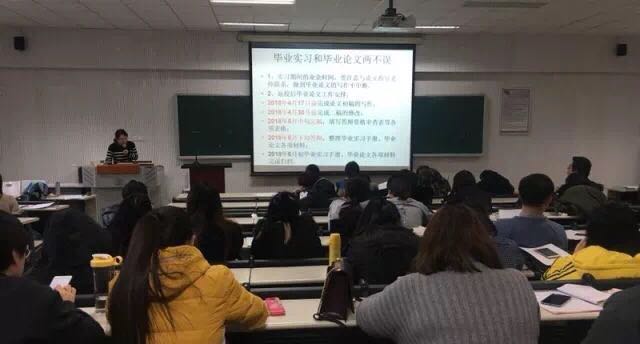 解文超老师为同学们介绍了毕业论文写作的要求及注意事项。老师根据学校最新发布的毕业论文写作规范,对大家提出了以下的要求:同学们要对毕业论文提起高度的重视,不仅要在质量上保证,也要在学校的要求的时间内完成,确保毕业实习和毕业论文写作两不误。“ 最后,贺严老师对此次会议进行了总结,一方面她对学生的就业实习寄予了殷切的期望,另一方面也对学同学们的毕业论文提出了要求。”通过此次会议,同学们毕业实习、就业和毕业论文的诸多疑惑都得到了解决,同学们对接下来开始的毕业实习和工作抱有很大的憧憬,对毕业论文的写作给予了足够的重视。对于即将开始的实习生活,同学们表示必将以饱满的热情来迎接挑战,不辜负老师的期望。在毕业论文方面,同学们也表示将精益求精,呈现出一篇高质量、高水平的毕业论文,以此作为大学生涯完美的答卷。
