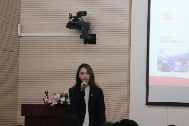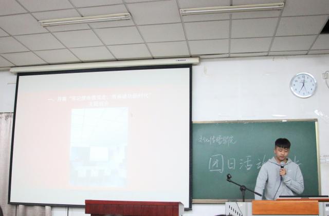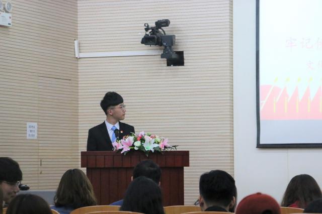 “文传的新闻学专业致力于培养新时代的媒体人,他们团日活动的核心板块更是令人期待。”朱开宇运用一系列PPT与采访的视频剪辑,讲述团日采访活动的现场环节、学习环节与分享会环节,说明了文传人用专业联系时政,认识到新时代新闻人的历史责任。