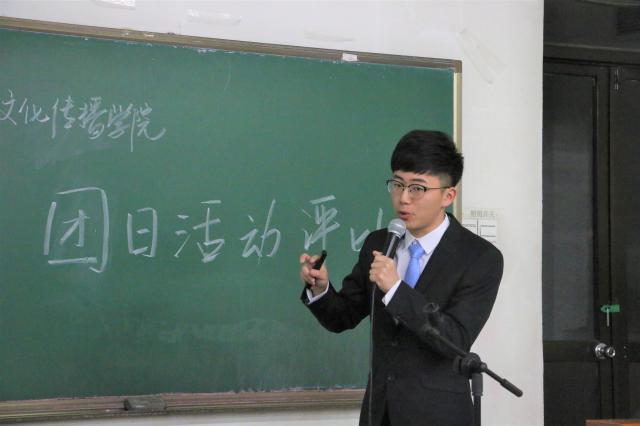 4月16日晚,我校“牢记使命跟党走,青春建功新时代”第七届主题团日评比活动决赛在阶梯八教室举行。文化传播学院代表团由朱开宇、彭周熙、冯辰、张傲组成,文传团总支成员及部分文传人一并到现场助威。参赛的来自八大院系的团支部用风格迥异的展演开启激烈的竞争。文化传播学院紧扣“新时代”的大背景主题与“有文化的传播者,会传播的文化人”的文传气质,采取TV秀的形式,以新闻直播间的形式集中汇报团日活动各个环节的开展情况。