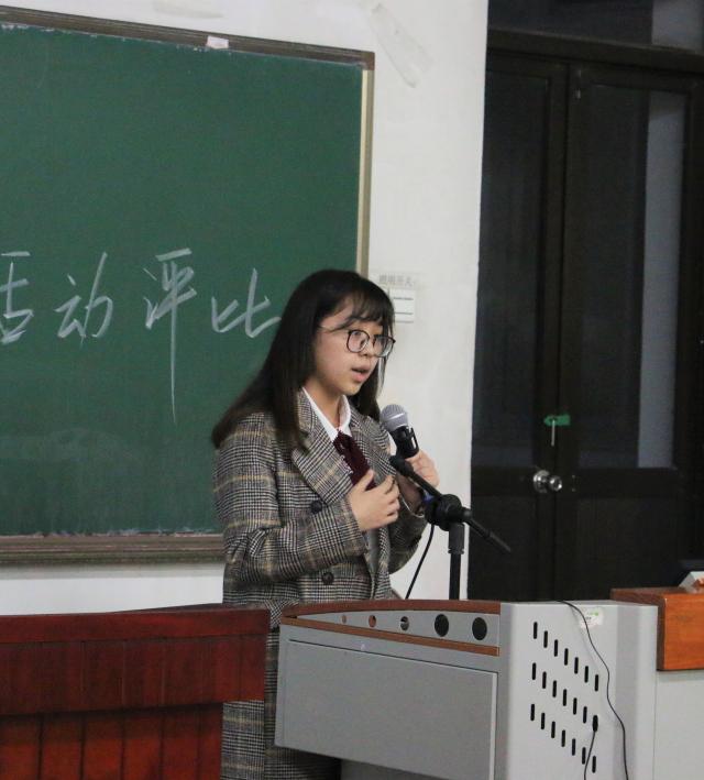 本次比赛到场的评委有文化传播学院团总支副书记赵苗子,组织部部长戴智慧,宣传部部长程泽,志愿者部部长陈云萱,志愿者部副部长曹正奇。