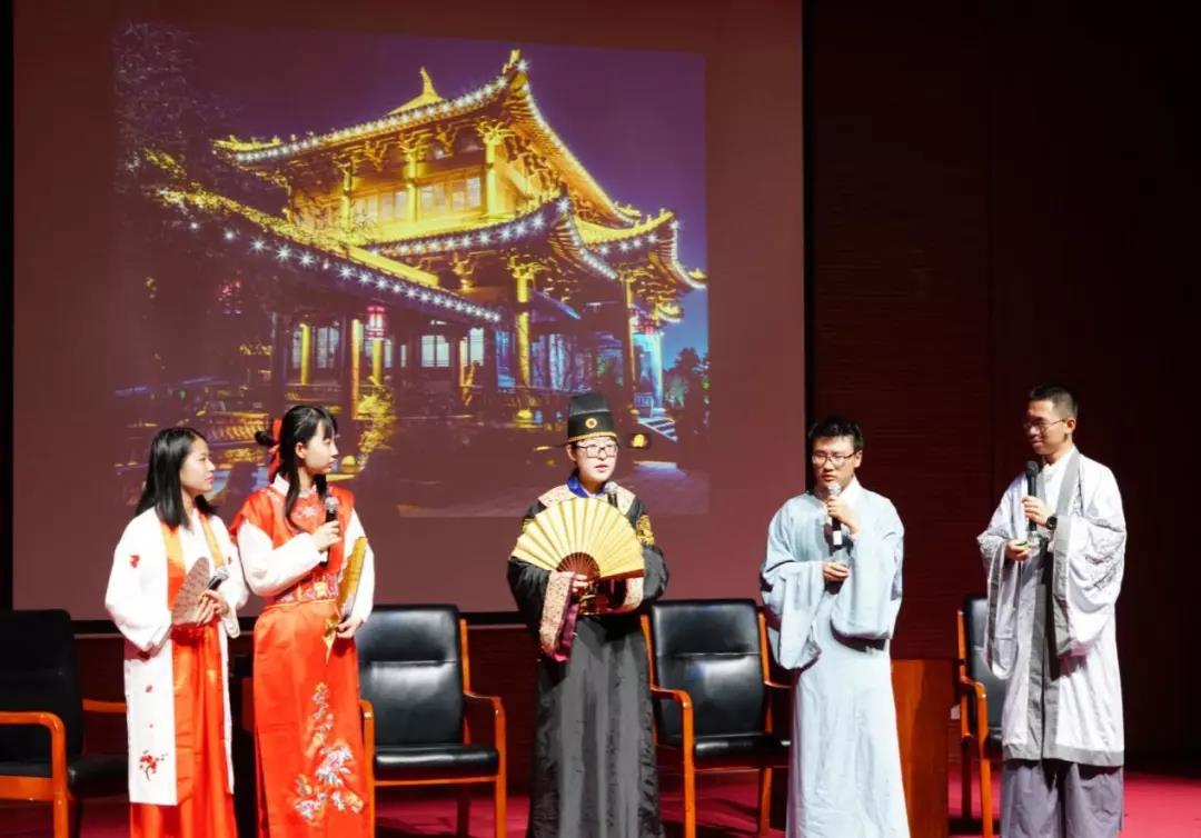 我校人文演绎环节得到评委老师的一致好评,成为当场该环节最高分。我校代表队的《醉红楼》剧本将曹雪芹的人生理想与《红楼梦》的人物情节相互交融,剧本构思精巧.人物集中,营造了“知曹”与“不知曹”的矛盾,符合古典戏剧的三一律,抒情化的演绎极其富有感染力,打动了现场的评委和观众。