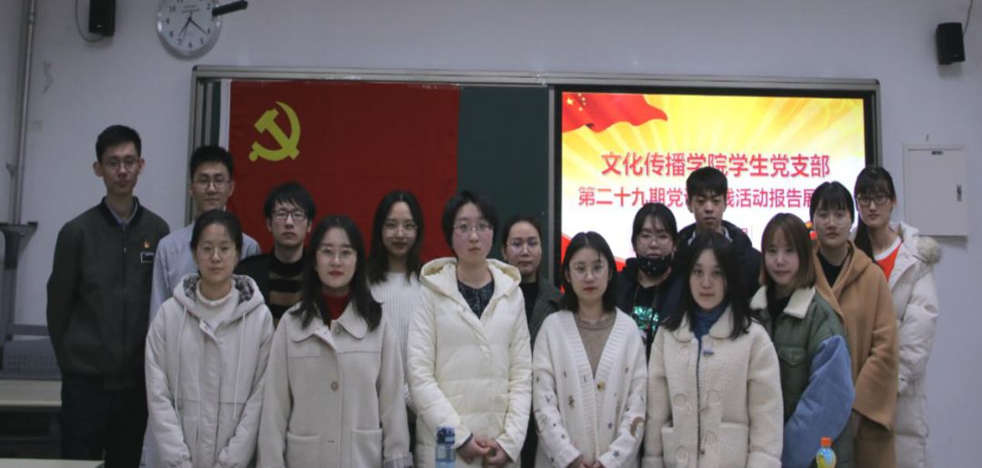2019年11月20日,文化传播学院第二十九期发展对象培训班实践活动汇报展示会于北京校区110教室成功举行。参与此次汇报展示会的有2016级党支部成员以及预备党员、第二十九期发展对象共十五人。本次汇报展示会由文化传播学院学生党支部干事王鸿燕主持。