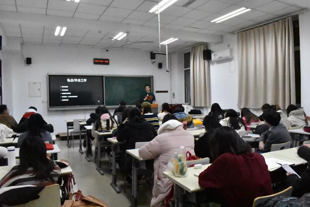 为提高同学们的外语水平,更好地准备考研及出国英语考试,12月5日18点30分,新闻传播学系邀请08新闻学长宋健伟在北京校区106教室举行英语学习及职涯规划专题讲座。本次讲座由新闻传播学系副主任王英钰老师主持,学校党政办副主任刘凯老师、校友会王利恒老师和新闻传播学17新闻全体同学共同出席了本次活动。