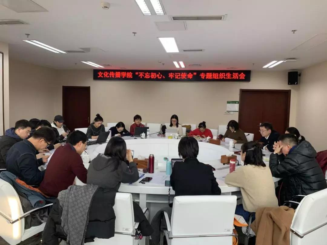 根据学校《关于开好党支部“不忘初心、牢记使命”专题组织生活会、开展民主评议党员的通知》要求,文化传播学院教工党支部于2019年12月6日在北京校区开展“不忘初心、牢记使命”专题组织生活会。会议由文化传播学院党总支书记蔡月同志主持,学院全体教师党员参加会议。