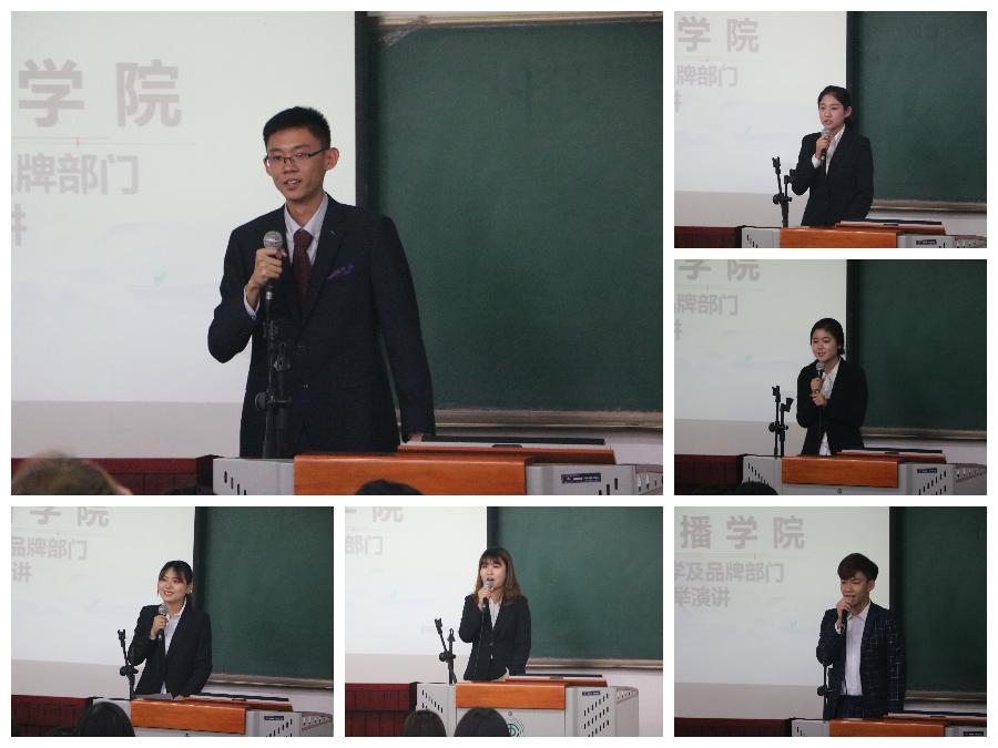 接下来参与本次换届的竞选人员便开始按照职业生涯发展协会、五行编辑部、团总支组织部、团总支宣传部、团总支志愿者部、小团总支、学生会学习部、学生会生活部、学生会文艺部、学生会宣传部、学生会体育部、学生会主席团、我的讲坛、新知新觉、尘蹊话剧社的顺序依次上台演讲。