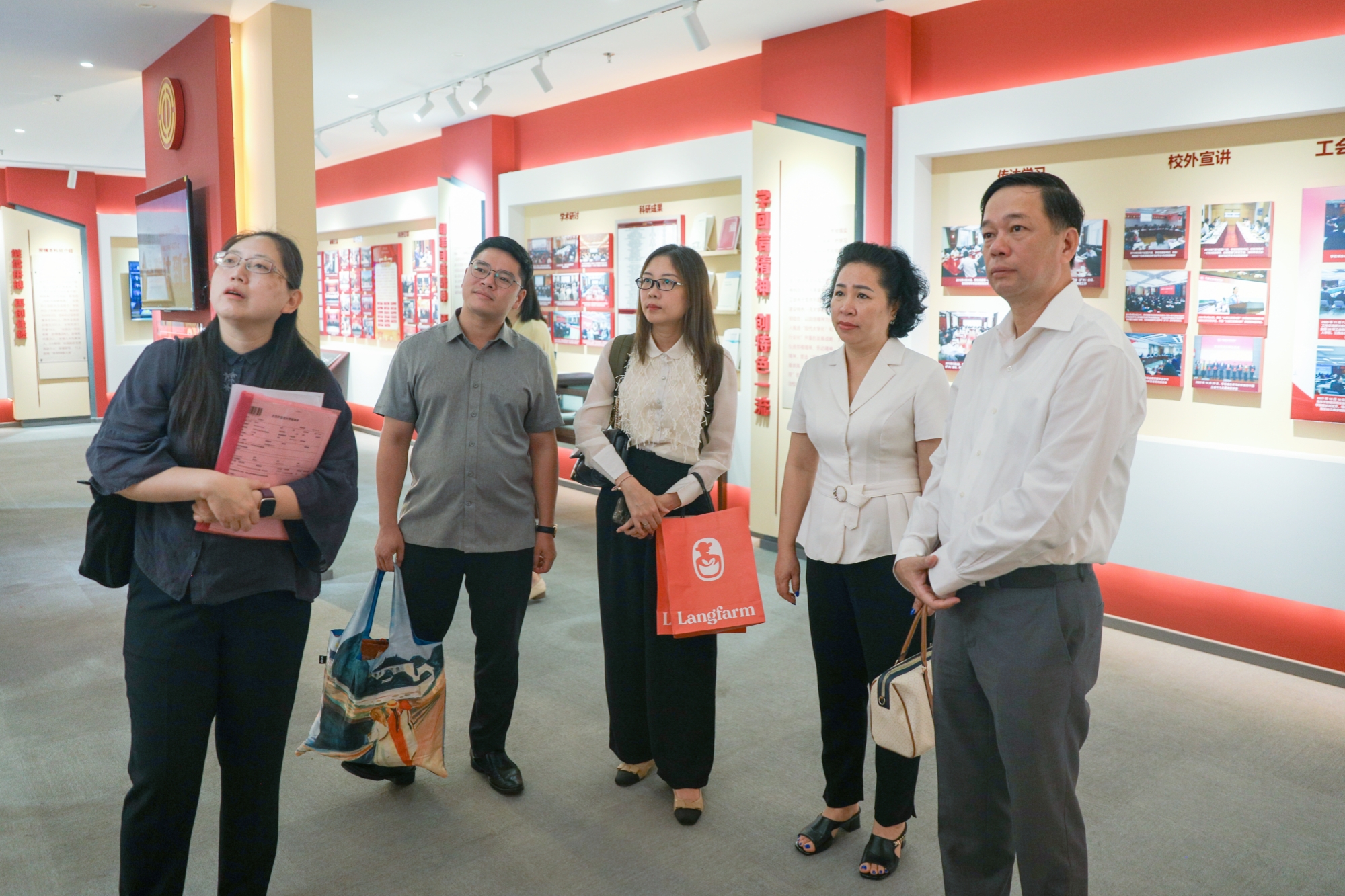 会谈交流前,代表团参观了我校校史馆和“新时代是干出来的”——我校学习贯彻习近平总书记回信精神主题展。