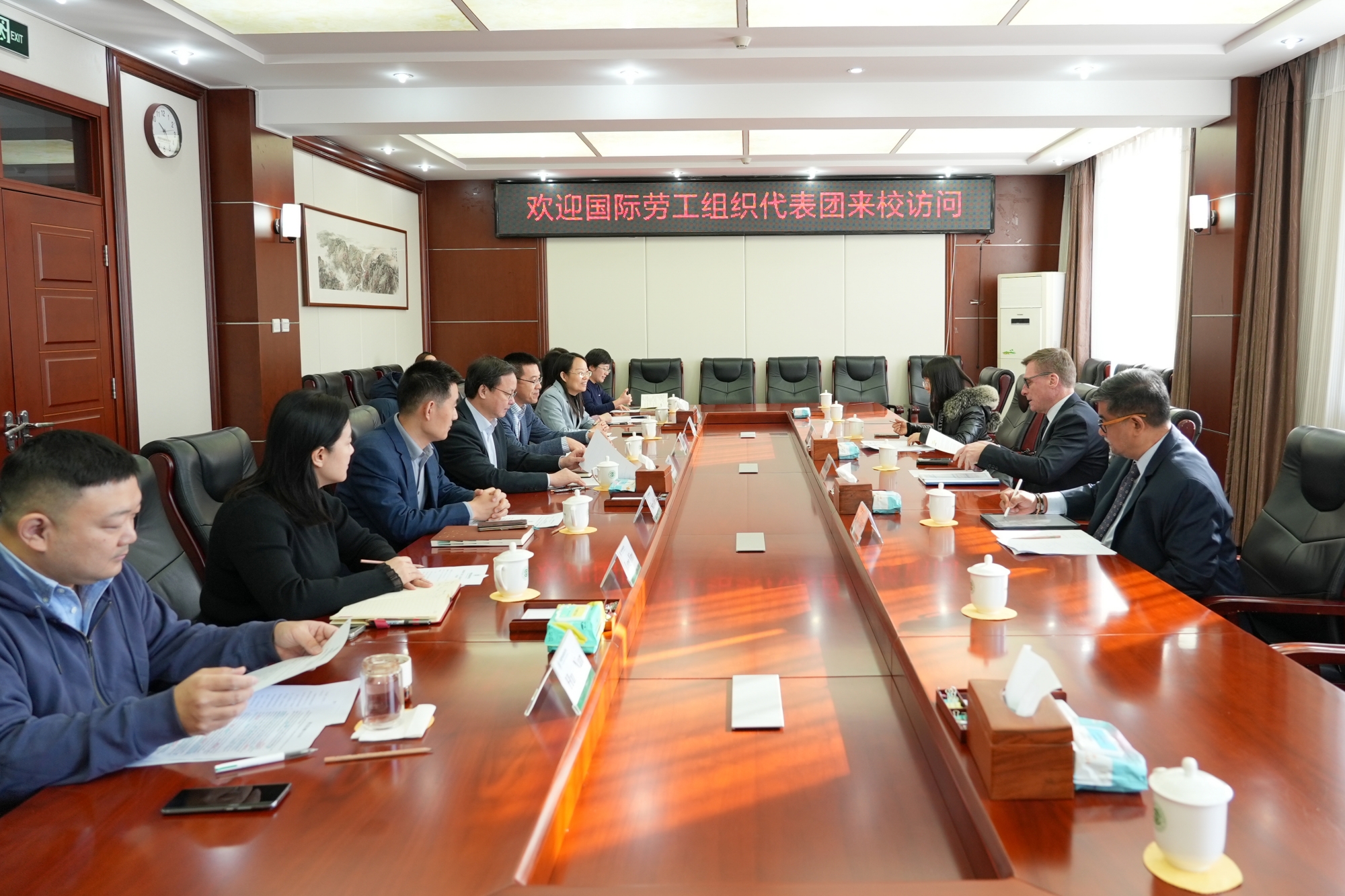 吴万雄对代表团的到来表示热烈欢迎。他回顾了我校与国际劳工组织的长期友好合作历程,介绍了学校办学沿革、特色优势及在劳动与工会领域的学科、人才培养、科研创新成果。他强调,数字时代推动劳动领域深刻变革,期待双方深化人工智能赋能工会工作、数字经济用工治理、劳动保障政策创新等前沿议题合作,携手助力全球体面劳动与社会公正。