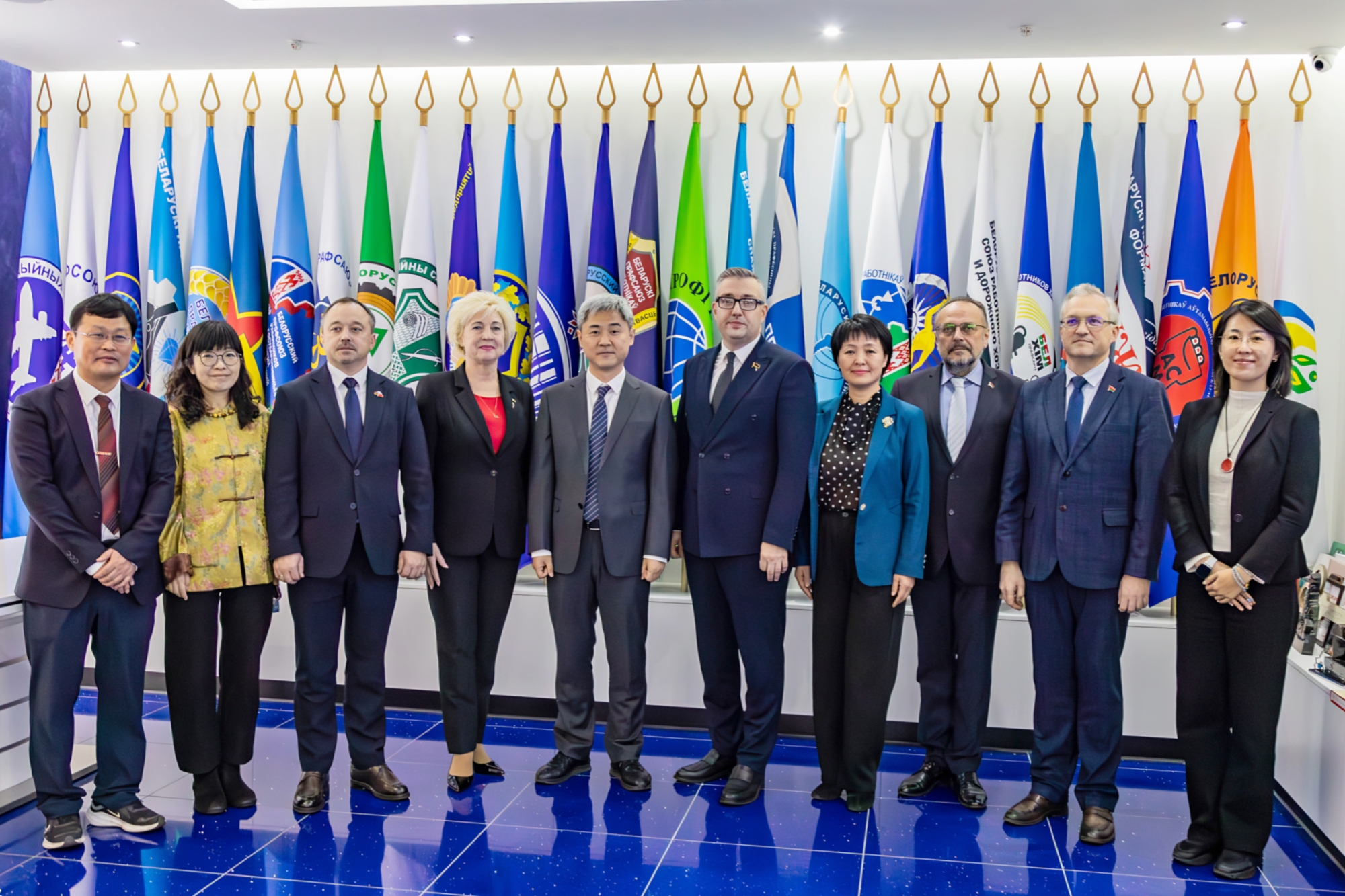 代表团还应邀到访白俄罗斯工会联合会,与白俄罗斯工会联合会领导举行会见并座谈。白俄罗斯工会联合会副主席瓦季姆·格拉乔夫对我校代表团的来访表示热烈欢迎,转达了主席尤里·先科的问候和良好祝愿,并期望继续深化双方工会院校沟通合作。闻效仪希望我校同国际劳动与社会关系学院有更多交流互动,助推两国工会的合作更加深入、长远。