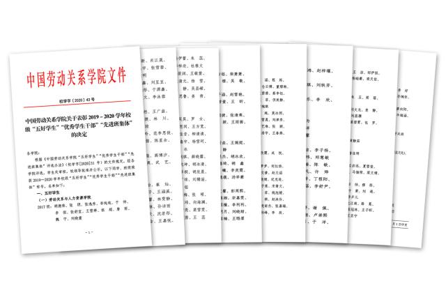 12月1日,学校印发《中国劳动关系学院关于表彰2019—2020学年校级“五好学生”“优秀学生干部”“先进班集体”的决定》(校学字〔2020〕43号),对获得首届中国劳动关系学院“五好学生”荣誉称号的394名学生进行表彰。