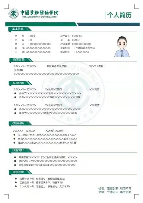 为进一步做好学校毕业生就业服务,加强就业指导,帮助毕业生在简历中增添核心竞争力,学生处就业创业指导中心为广大毕业生精心打造了专属于中劳学子的个人简历模板1.0系列。