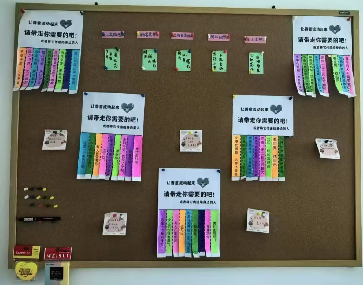 “让爱流动起来!”文化墙上的每一份资源——一句鼓励、一个建议、甚至一张可爱的小画,都等待被你带走,或传递给身边的人。无论是汲取力量,还是成为他人的光,你都能在这里找到属于自己的角色。