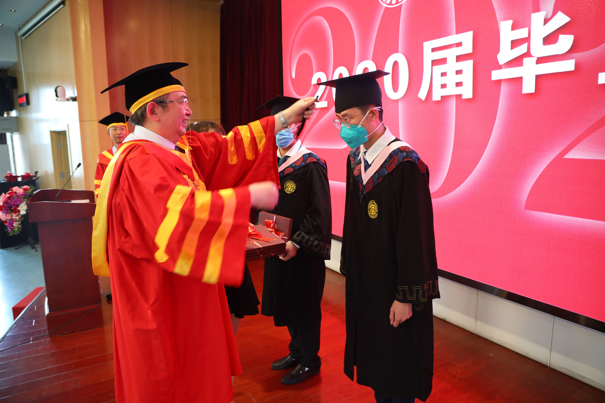 学校领导一一为毕业生代表颁发2020届优秀毕业生、优秀毕业论文、优秀学生干部、三好学生荣誉证书。