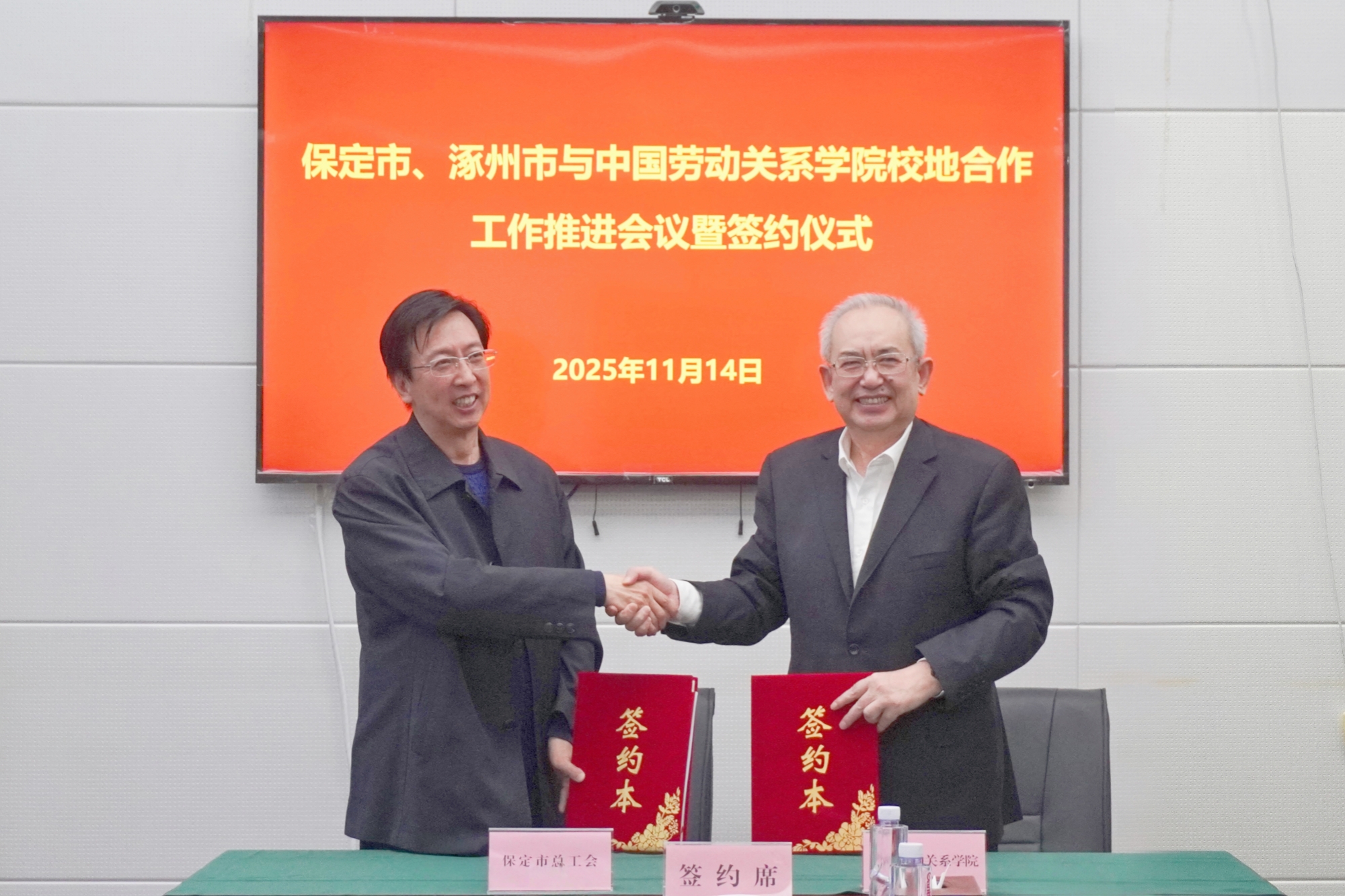 韩朝红在讲话时强调,推进校地合作是贯彻落实党的二十届四中全会精神、促进高质量发展的具体举措。她指出,中国劳动关系学院在工会干部培训、劳模教育、工匠学院建设等方面具有独特优势,保定与涿州市两级政府将进一步完善与学校的对接机制,明确责任分工,强化服务保障,推动合作走深走实。她希望,校地双方以此次签约为契机,不断拓展合作领域,实现资源共享、优势互补、共赢发展。