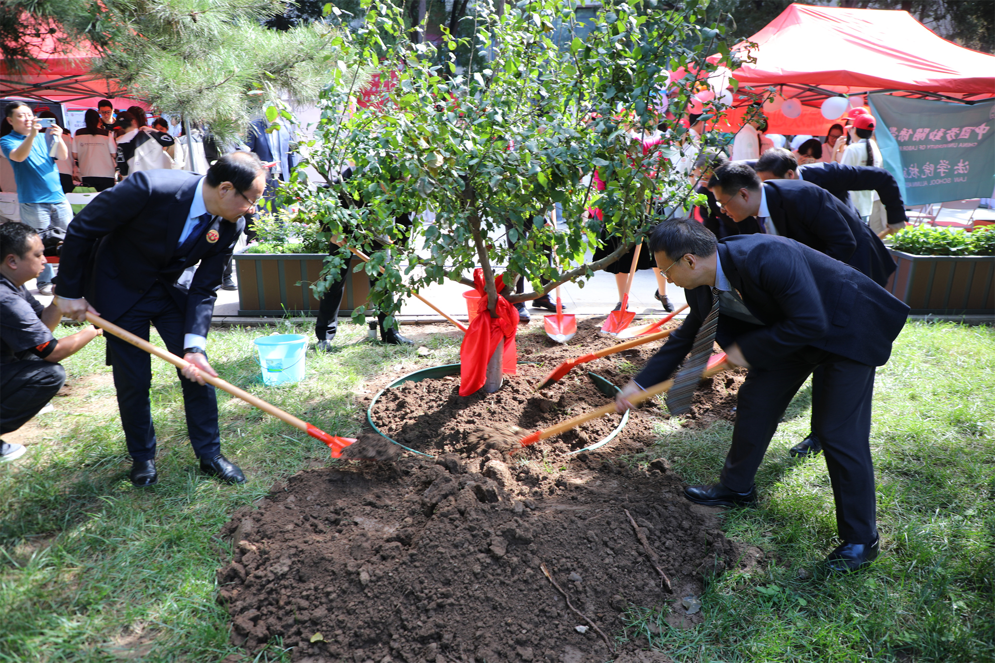学校领导在广场一侧植下“希望之树”,寓意着学校如这株海棠一般茁壮成长,终将繁花似锦、成就卓越。