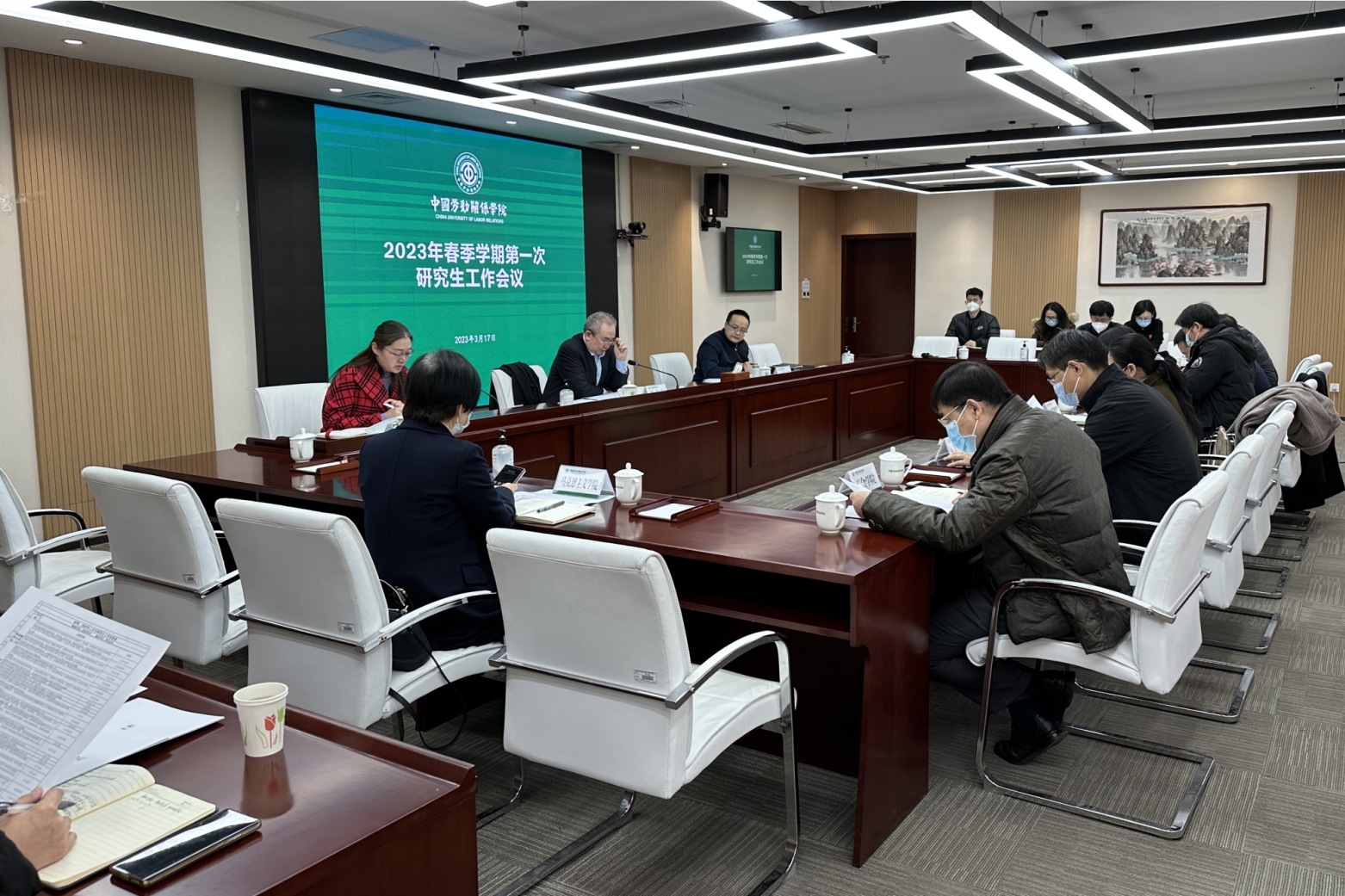 傅德印校长强调,本学期研究生教育教学工作总体任务是要全面深入学习贯彻习近平新时代中国特色社会主义思想和党的二十大精神,贯彻落实《中华全国总工会关于支持中国劳动关系学院特色一流大学建设的意见》,扎实推进学校“十四五”学科建设与研究生教育发展规划,以构建特色鲜明、优质高效的研究生教育教学体系,推动研究生教育再上台阶。他从学科建设、人才培养、制度体系建设三方面,就本学期重点工作提出具体要求:一是强化特色、突出优势,围绕学科建设方向,开展师资队伍、人才培养、学术研究、研究成果、学术平台等要素建设工作,努力提升学科建设成效,切实解决制约学校学科发展的问题;二是紧扣人才培养关键环节,强化质量意识,围绕各专业课程体系,切实加强课程建设,优化完善教学内容,改进创新教学方法与手段,持续深化产教融合培养机制改革,努力提升研究生教育水平;三是夯实基础,进一步完善研究生教育教学管理制度体系与质量保障体系,围绕学校研究生管理要求,构建形成以教学运行、教学督导、信息反馈与改进落实的闭环质量管理体系,持续提升研究生教育教学质量。
