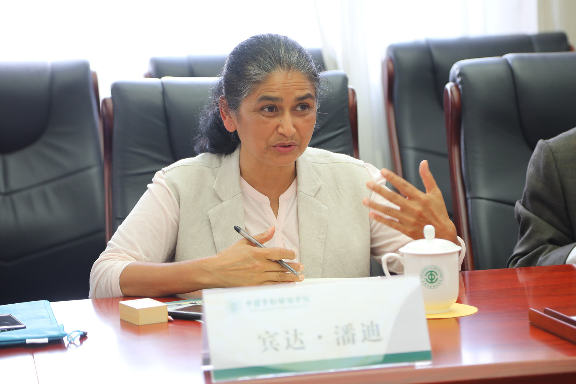 On the afternoon of September 4, the delegation of GEFONT Trade Union Policy Institute, led by President Bindai Pandi, visited the CULR. Liu Xiangbing, President and Deputy Secretary of the CULR Party Secretary and Vice President Wu Wanxiong met with the delegation. Yan Xiaofei and Jiang Ying, members of the Standing Committee of the CULR Party Committee and relevant department heads and teacher representatives participated in the discussion and exchange. The discussion was chaired by Vice President Wu Wanxiong.