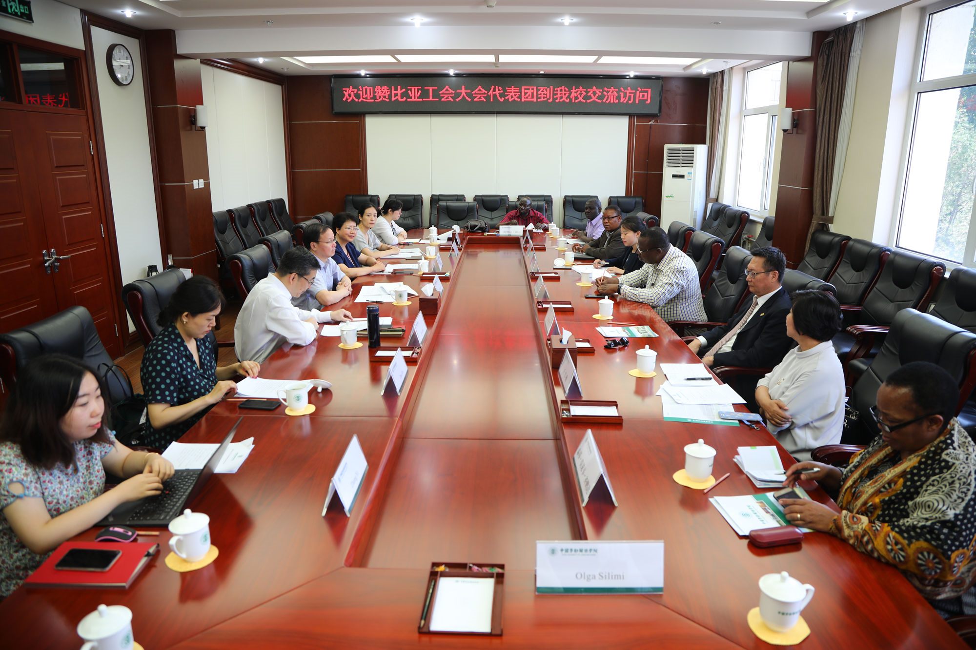 On the morning of July 4, a deleglation of the Zambia Congress of Trade Unions led by its president, Nkole Chishimba, visited the CULR. Li Xiaobo, Vice Director of the International Department of the ACFTU, Wu Wanxiong, Vice President of the CULR, and Yang Dongmei, member of the Standing Committee of the CULR Party Committee, Director of the School of Labor Union, and Vice Dean of the School of Marxism, met with the delegation. Relevant personnel from the International Department of the ACFTU, the International Office of Cooperation and Exchange of the CULR, the School of Labor Union, and the School of Trade Union Cadres Training attended the meeting.