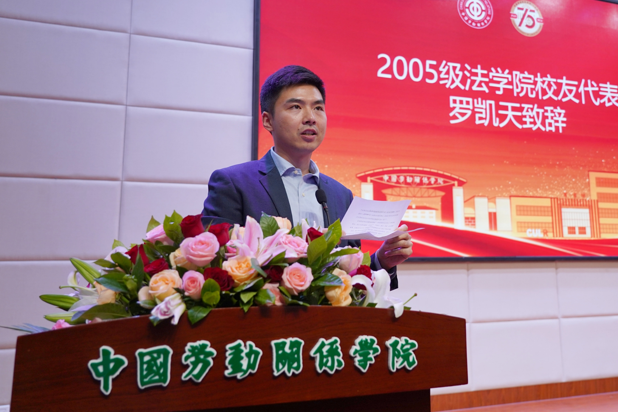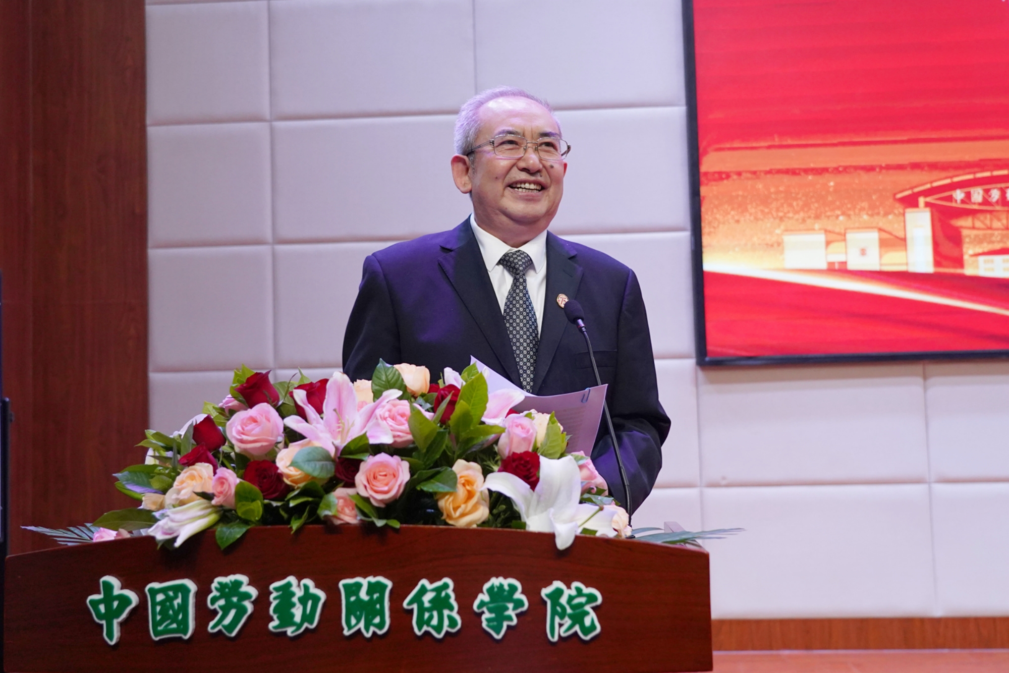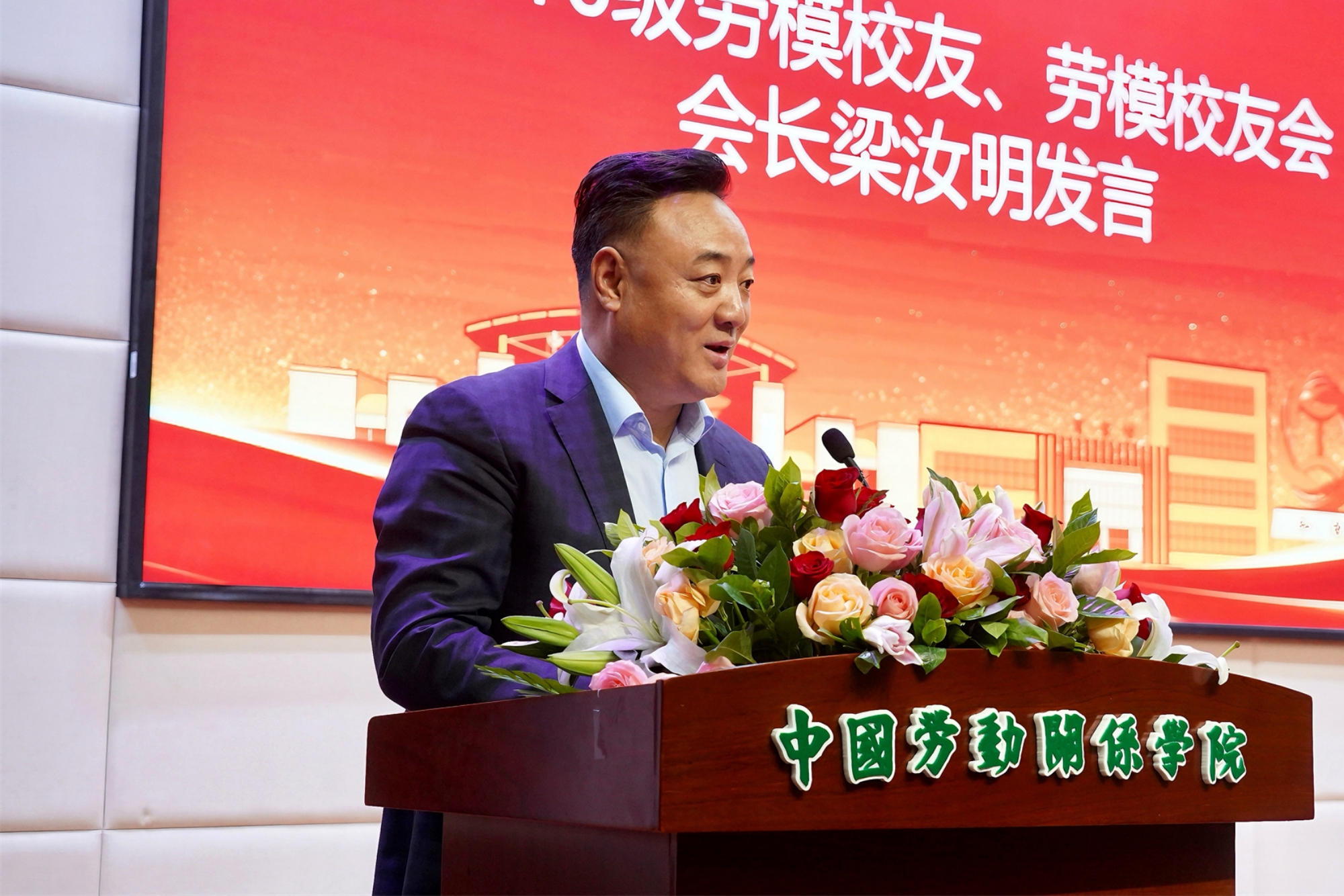 Li Shuang, a representative of retired teachers, shared his experiences of working in the university and passion for education. Gao Yuanyuan, an alumni representative from the 2001 School of Labor Economics (formerly the department of economic management) recalled touching stories of campus life, and expressed gratitude to the alma mater and teachers. Liang Ruming, an alumni representative of the class of model laborers and chairman of the model laborer alumni association, stated to better leverage the resources of the association to contribute to the development of CULR. Liu Dehua, a representative of union cadre training expressed gratitude to the platform of study and development for union cadre trainees, and wished CULR a big success on the journey for the new era. Luo Kaitian, a representative of undergraduate alumni from the 2005 School of Law, hoped that younger students cherish the time of campus life to actively learn disciplinary knowledge, take part in practical activities and improve the personal core competitiveness. Gao Yuechen, a representative of postgraduate alumni from the 2019 School of Public Administration, shared "labor stories" in study and life, and showed her determination of inheriting and implementing the excellent tradition of the alma mater to serve the country with disciplinary knowledge.