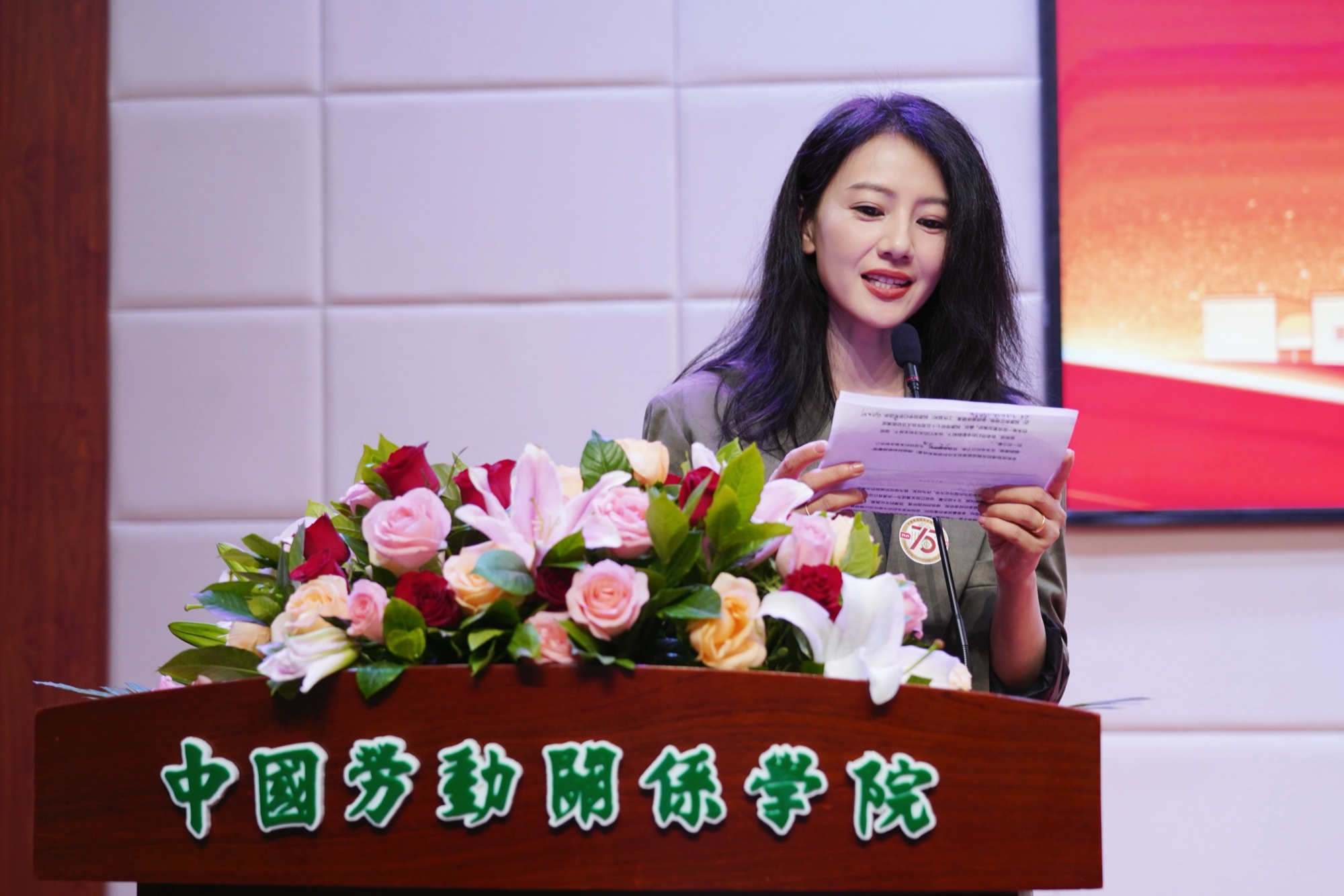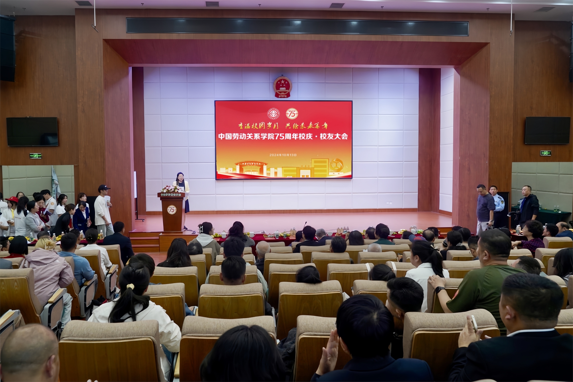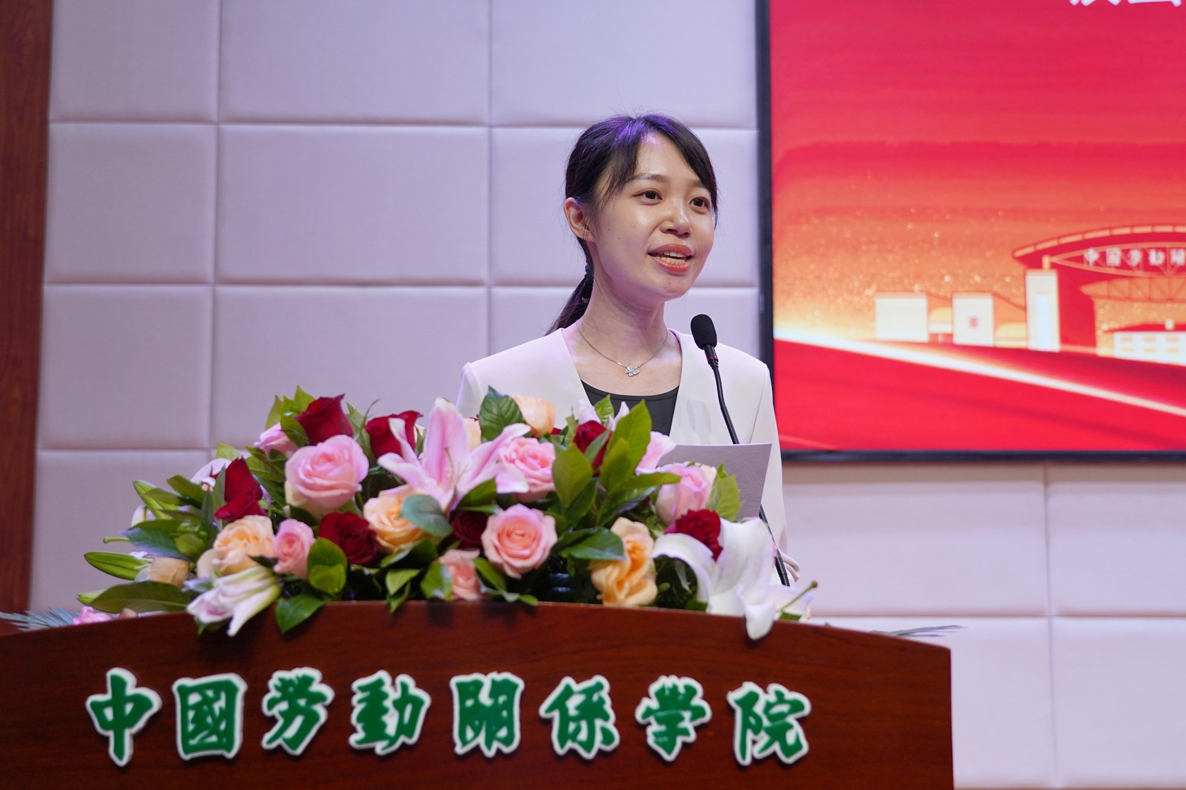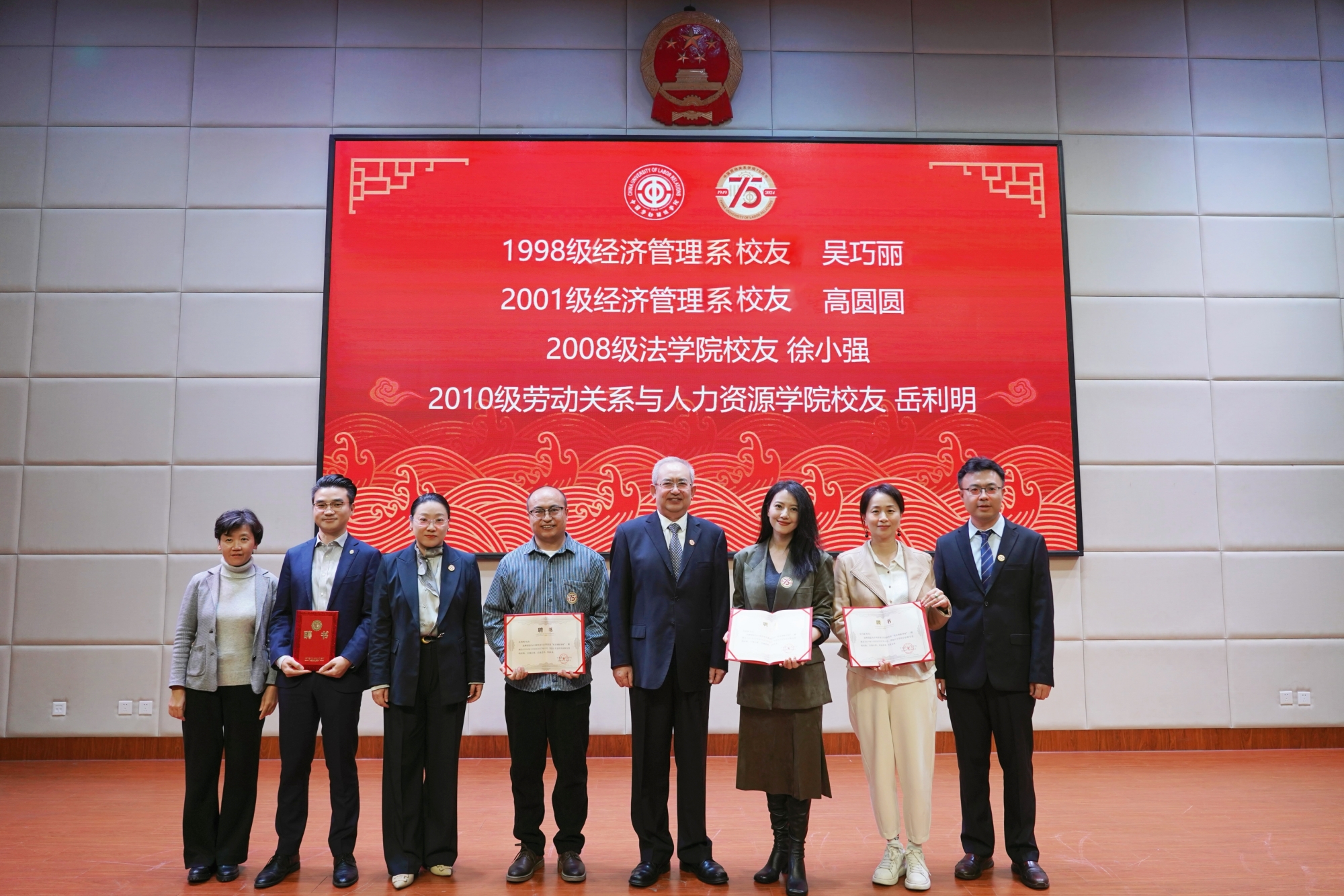 Li Shuang, a representative of retired teachers, shared his experiences of working in the university and passion for education. Gao Yuanyuan, an alumni representative from the 2001 School of Labor Economics (formerly the department of economic management) recalled touching stories of campus life, and expressed gratitude to the alma mater and teachers. Liang Ruming, an alumni representative of the class of model laborers and chairman of the model laborer alumni association, stated to better leverage the resources of the association to contribute to the development of CULR. Liu Dehua, a representative of union cadre training expressed gratitude to the platform of study and development for union cadre trainees, and wished CULR a big success on the journey for the new era. Luo Kaitian, a representative of undergraduate alumni from the 2005 School of Law, hoped that younger students cherish the time of campus life to actively learn disciplinary knowledge, take part in practical activities and improve the personal core competitiveness. Gao Yuechen, a representative of postgraduate alumni from the 2019 School of Public Administration, shared "labor stories" in study and life, and showed her determination of inheriting and implementing the excellent tradition of the alma mater to serve the country with disciplinary knowledge.