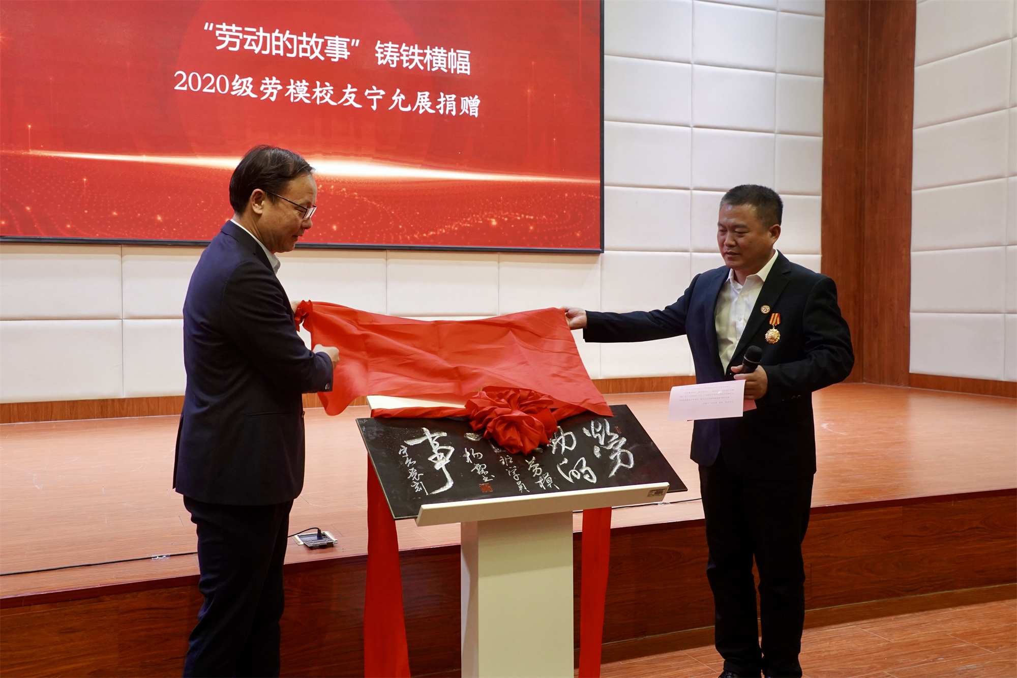 On behalf of CULR, Vice President Liu Lihong accepted the special donation of 200,000 yuan from An Zhongyan, chairman of Beijing Fengshun industry and trade group, an alumnus of the 2020 class of model laborers, and a director of CULR foundation. An Zhongyan expressed his affection to the alma mater, stressed on the social responsibility of entrepreneur, and said that he will spare no effort to run business well for more contributions and payback to the alma mater and society.