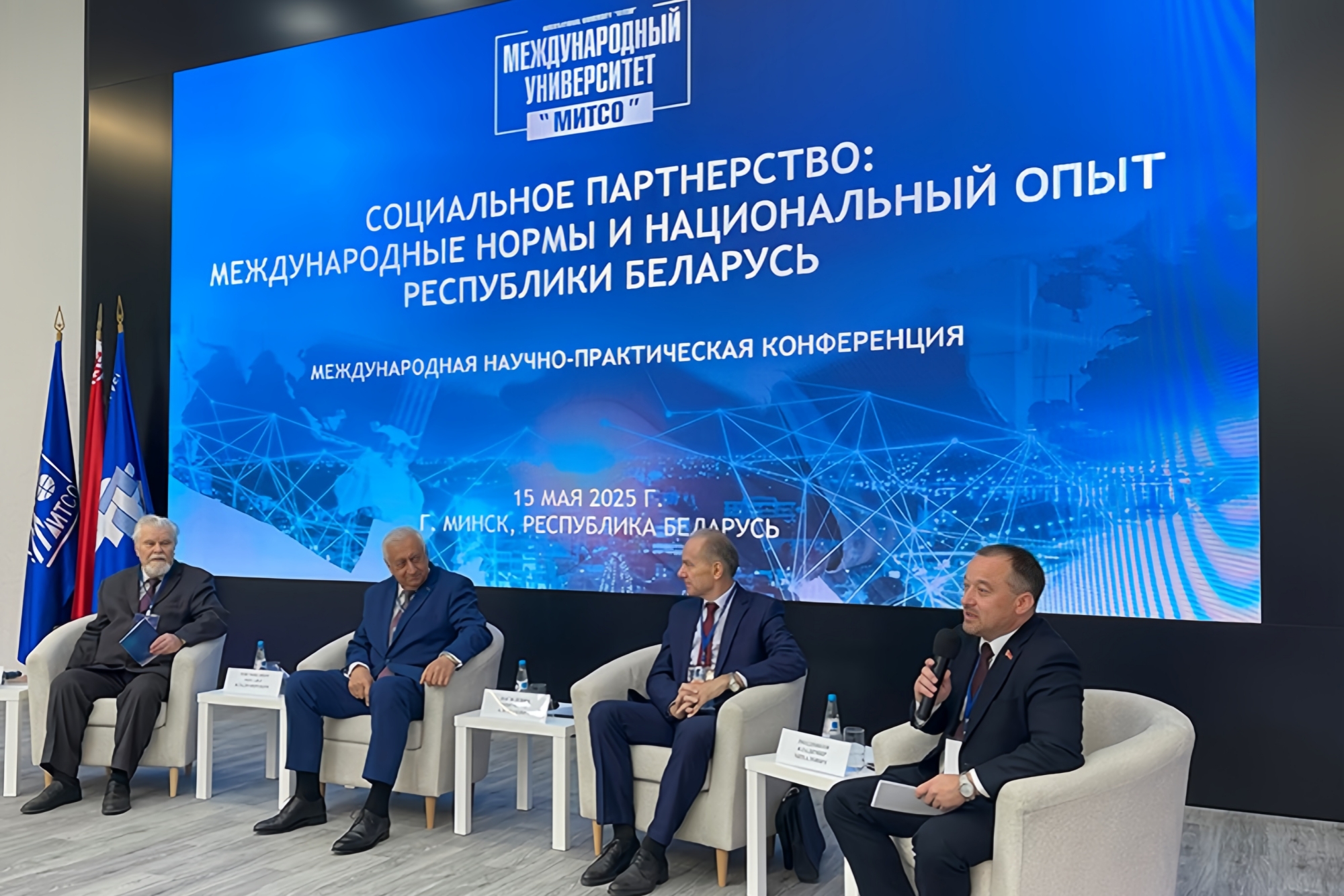 On May 15, the International Academic Symposium on "Social Partnership: International Standards and Belarusian National Practice" was held in both online and offline forms. Yuri Senko, chairman of the Federation of Trade Unions of Belarus delivered the opening remark. The symposium was attended by Igor Starovoytov, deputy minister of labor and social protection of Belarus, Antyukh Arsentyevich, deputy general manager of the non-commercial organization "Union of Industrializes and Entrepreneurs (Employees)", and Santos Ereche, president of the San Paulo Health Workers' Union, together with more than 50 experts and scholars from Russia, Belarus, Kazakhstan, Brazil, China and other countries.